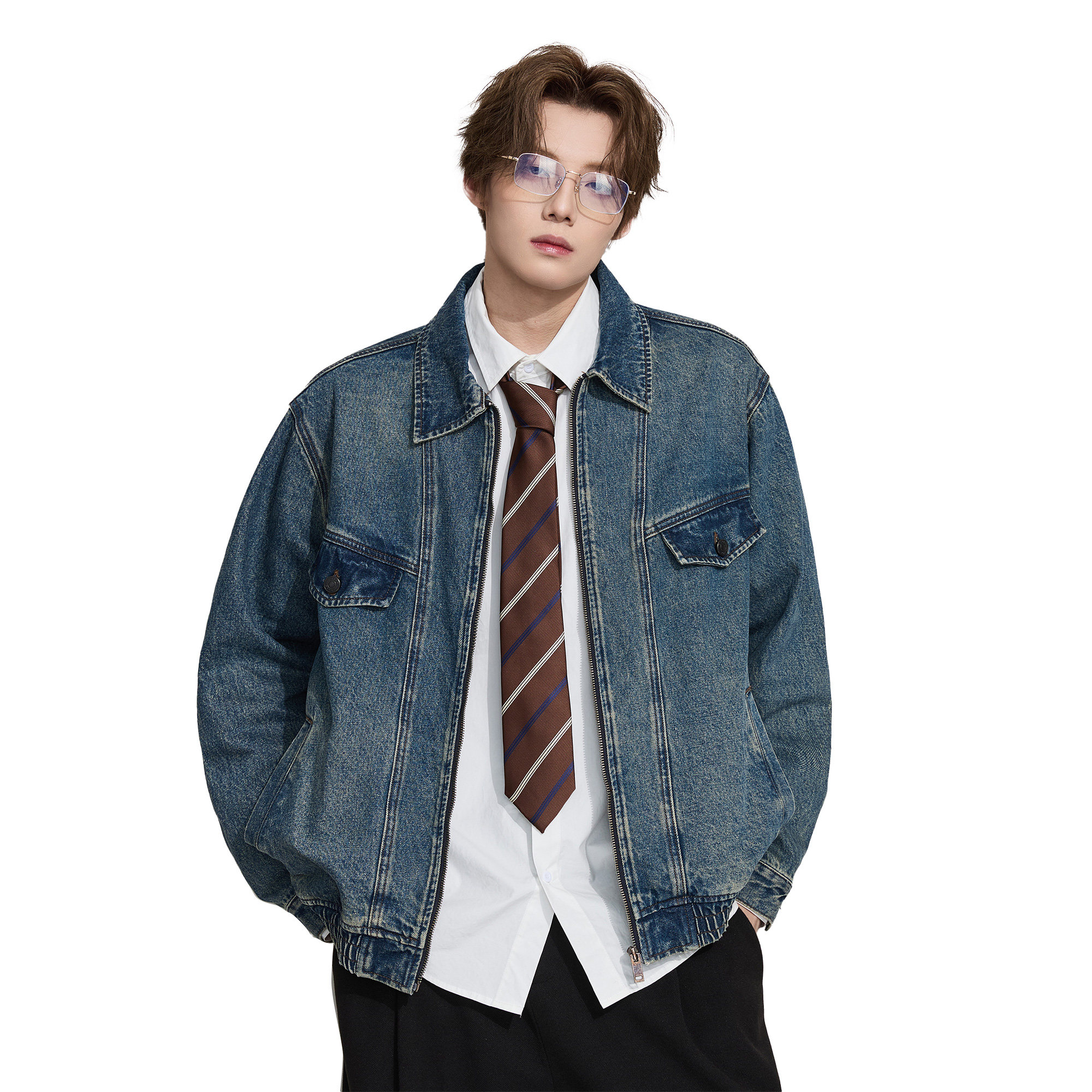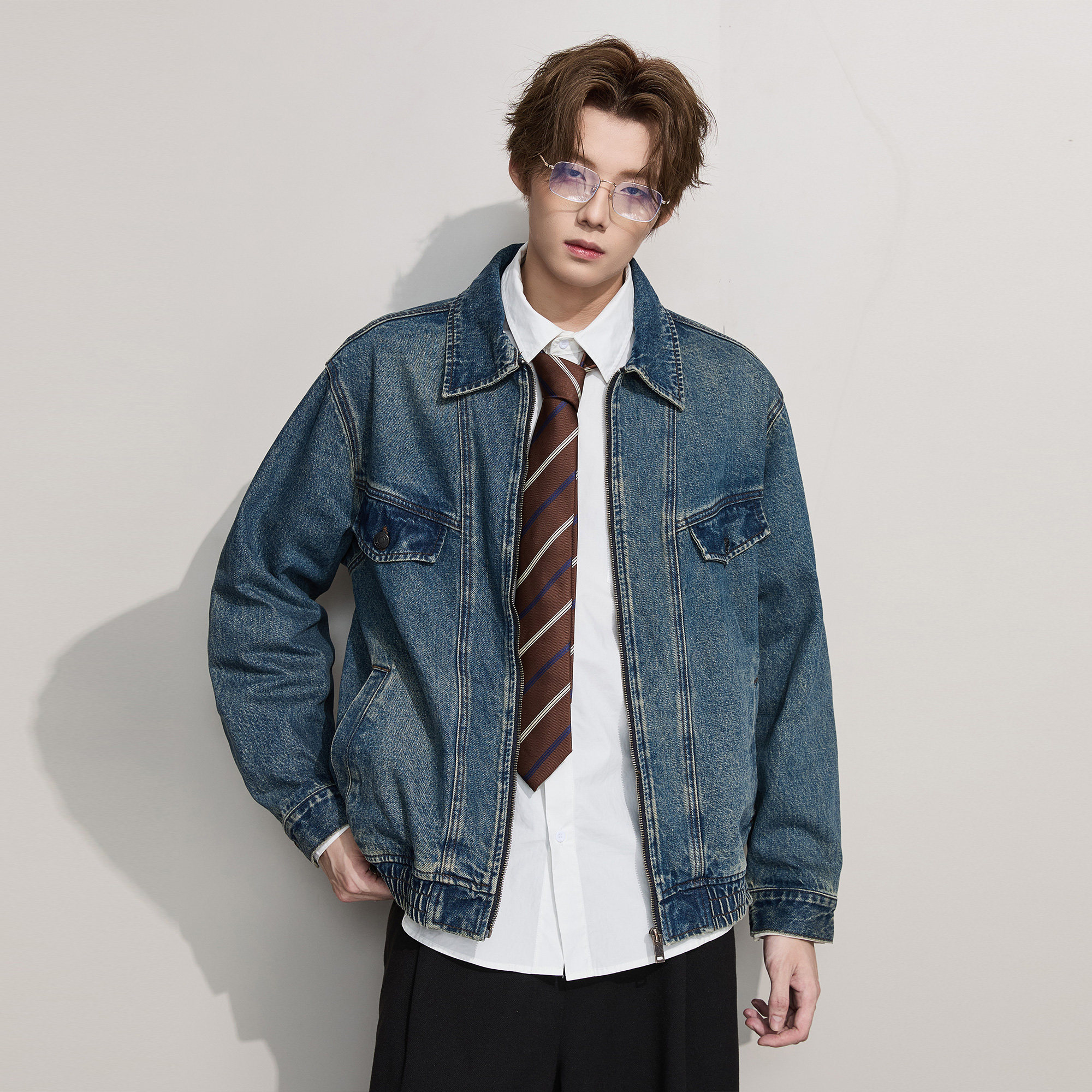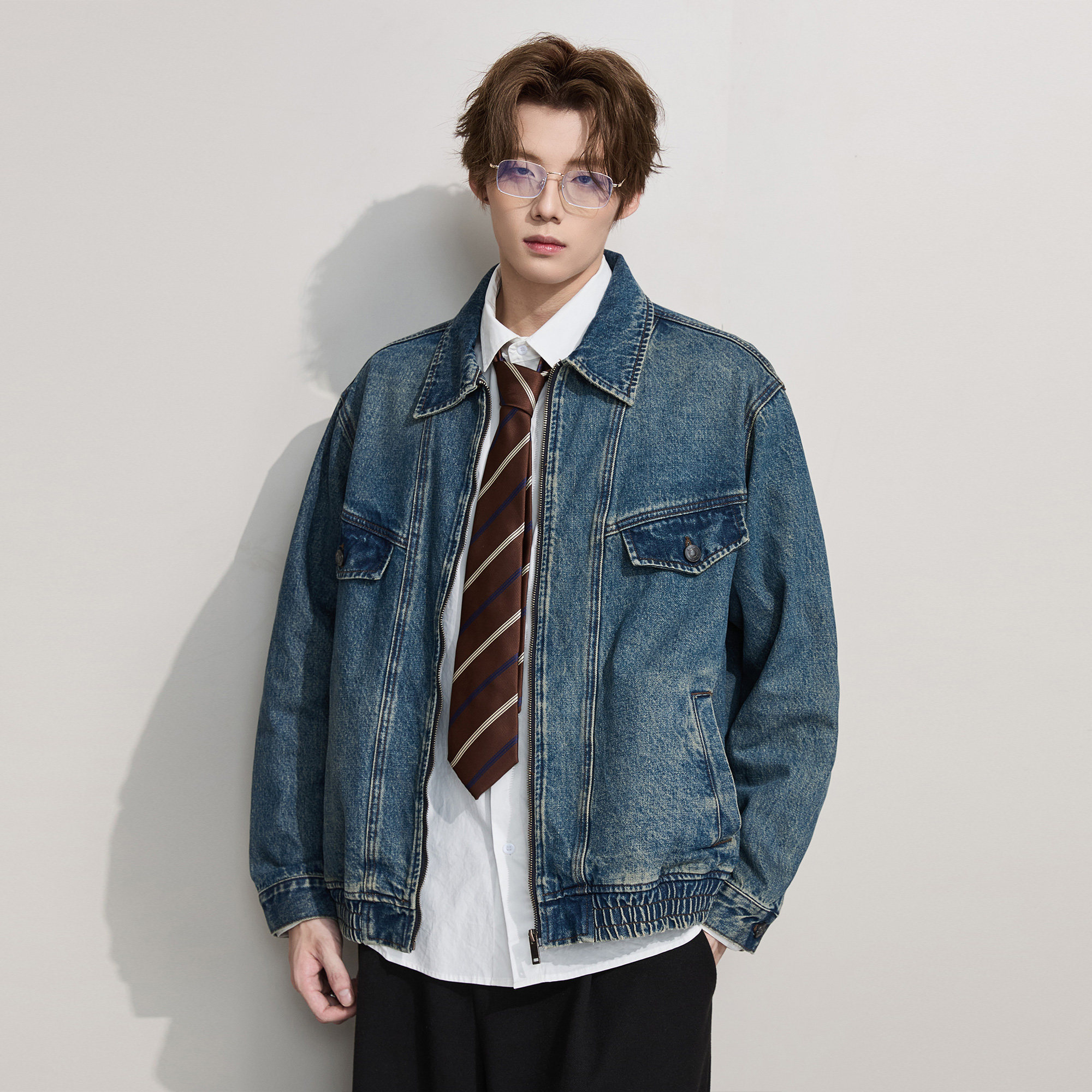 ALLIN 美式水洗牛仔衣外套男秋冬季情侣宽松休闲cleanfit翻领外套