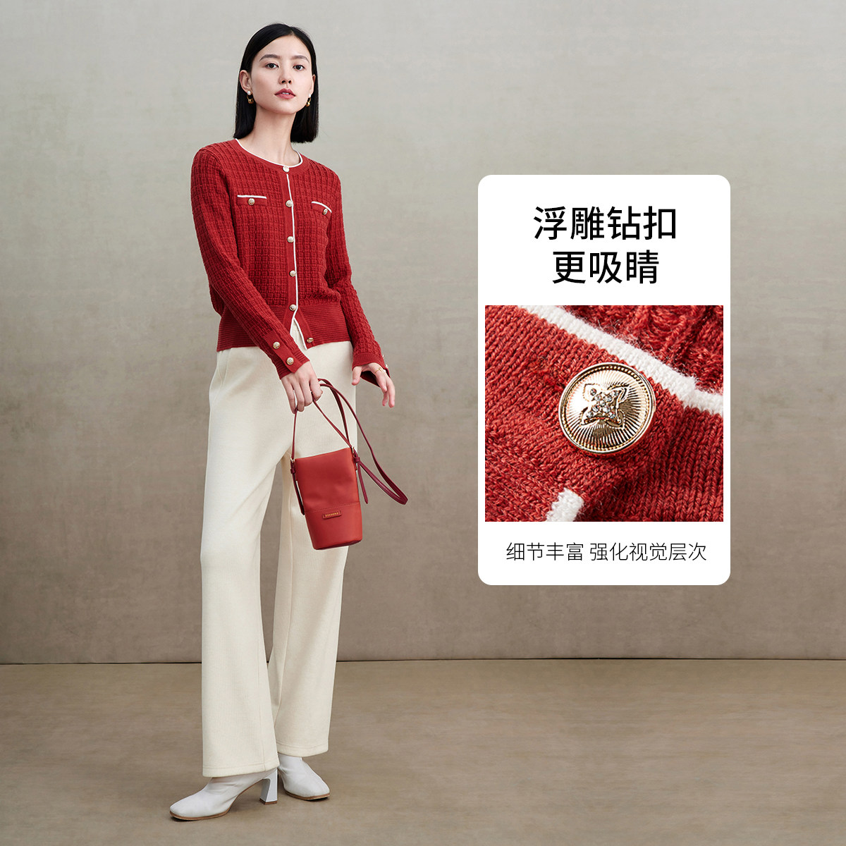 【新年战袍】菲妮迪小香风针织开衫女2026春新款羊毛时尚毛衣外套