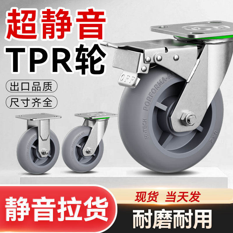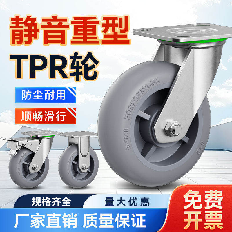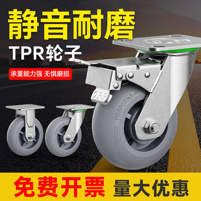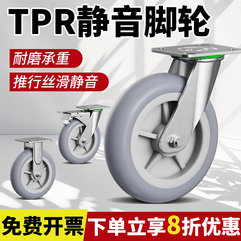承重万向轮轮子8寸重型平板车小推车橡胶脚轮轱辘TPR轮超静音耐磨
