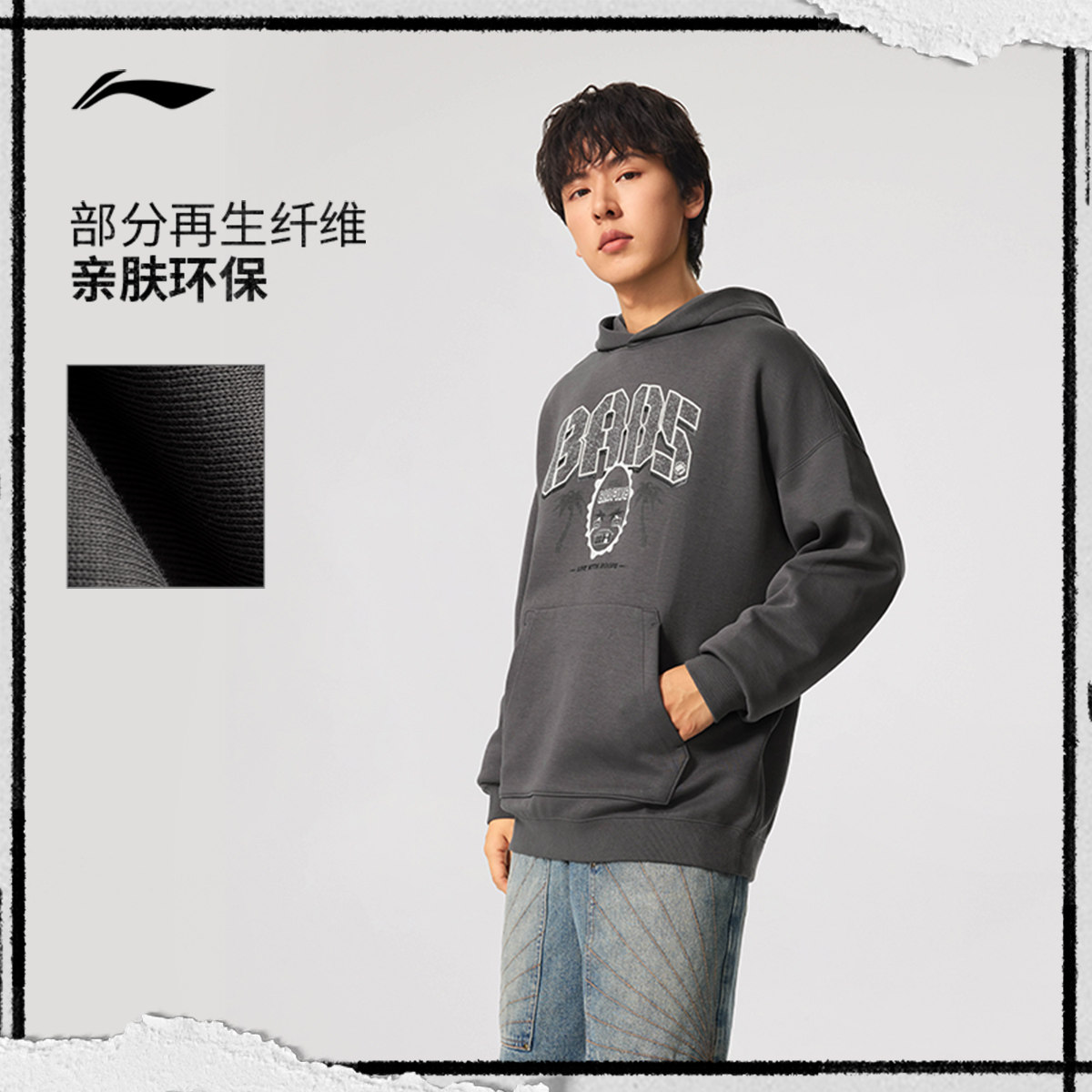 李宁反伍BADFIVE 卫衣男款官方冬季新款帽衫宽松连帽上衣运动服男
