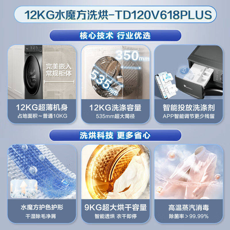 小天鹅洗衣机水魔方滚筒全自动家用12公斤洗烘一体旗舰店618plus