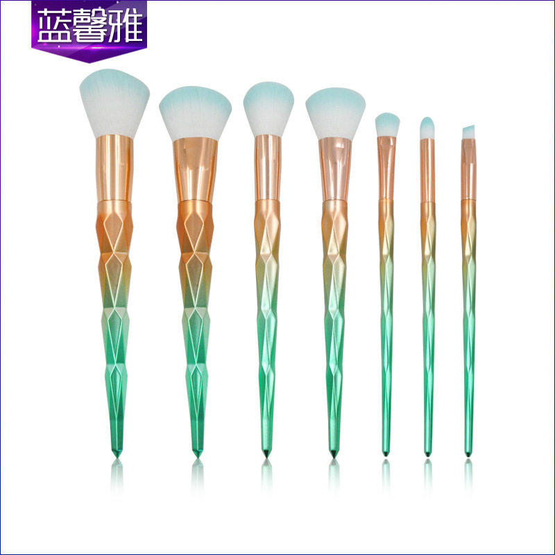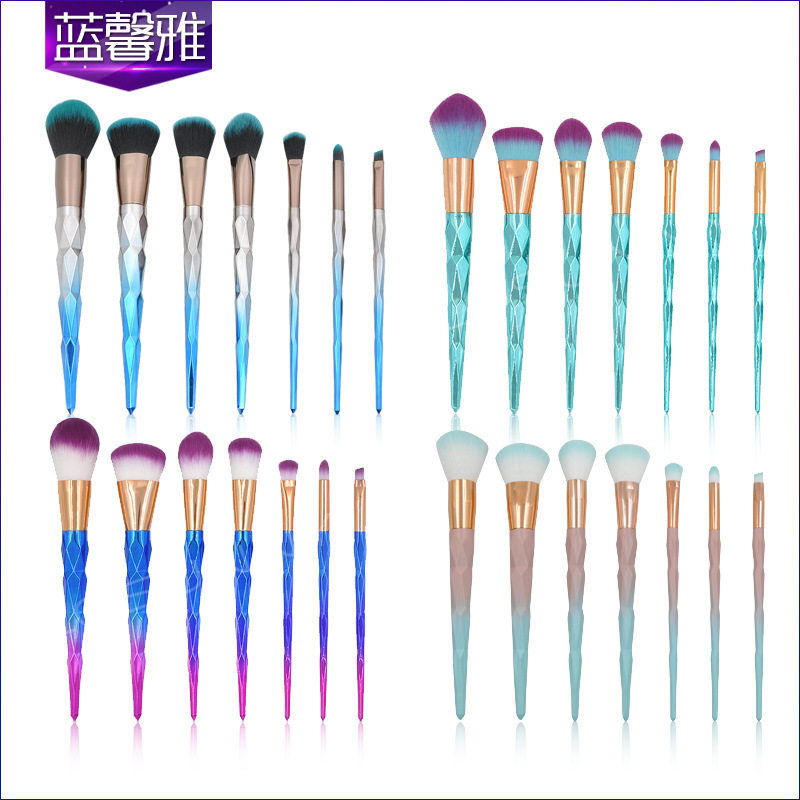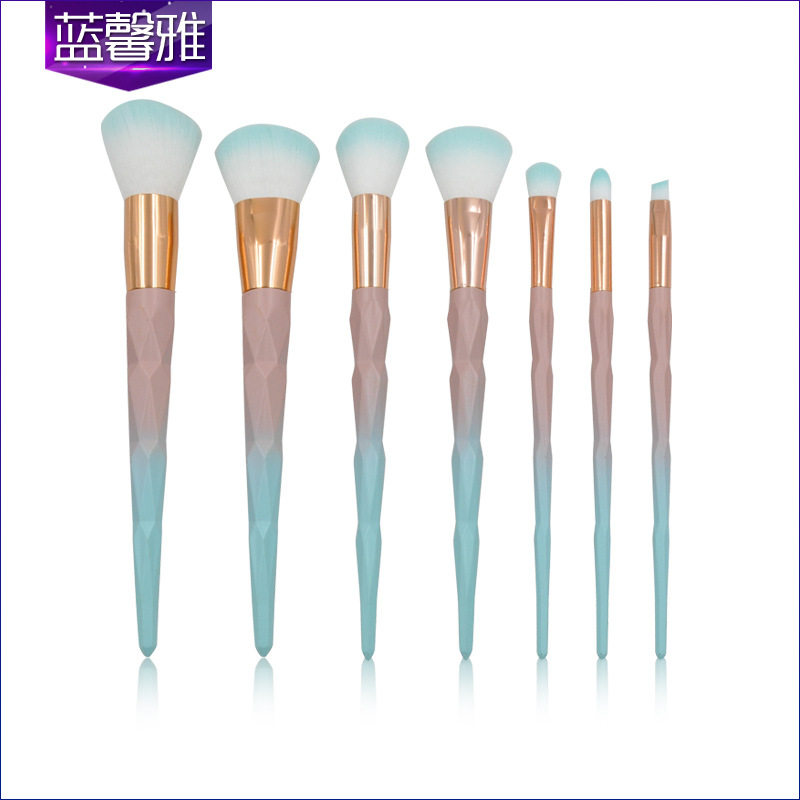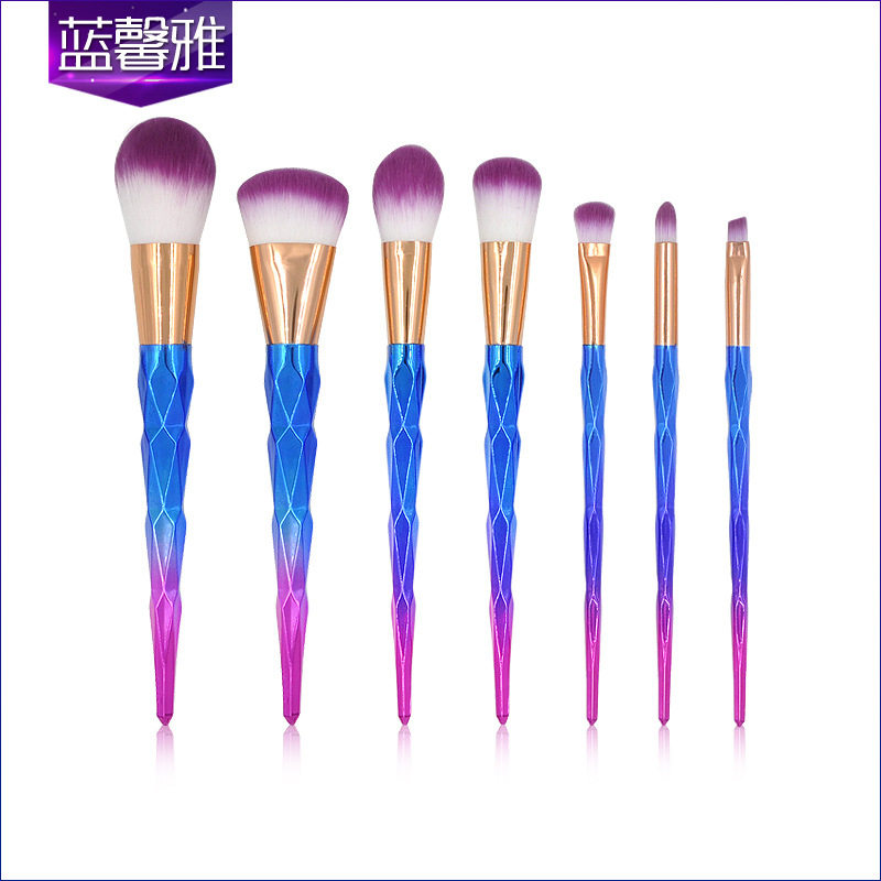 新款 7支钻石柄化妆刷套装 蓝色螺旋柄独角兽粉底刷 眼部彩妆工具