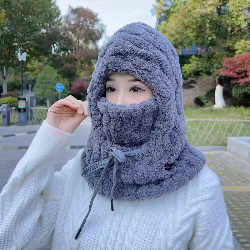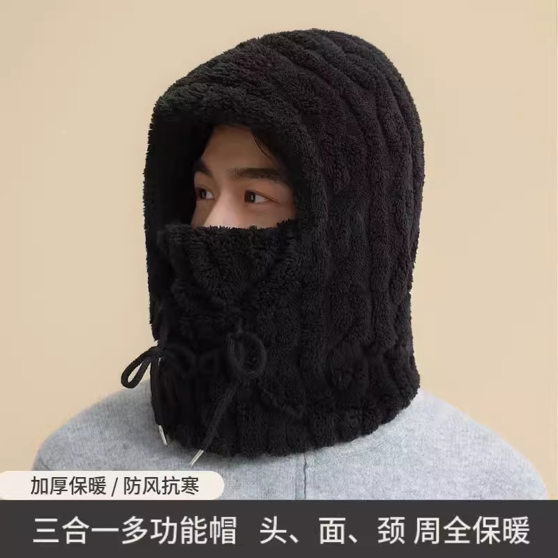 一体毛巾帽女秋冬季骑行防寒面罩加绒保暖帽子围脖防风滑雪头盔