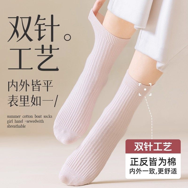袜子女款纯棉中筒袜秋冬季抗菌防臭吸汗运动棉袜春秋款无骨短筒袜