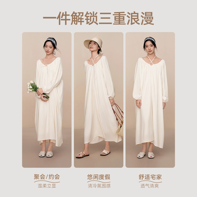 幸棉巨好看的春夏白色连衣裙女2026新款连身裙海边穿搭度假长裙子