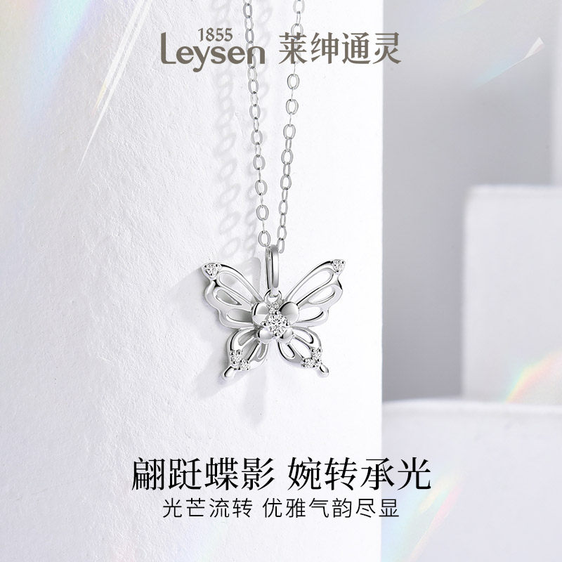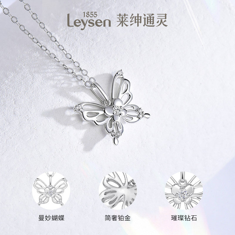 莱绅通灵浪漫蝴蝶 铂金pt950钻石项链 送女友轻奢情人节礼物