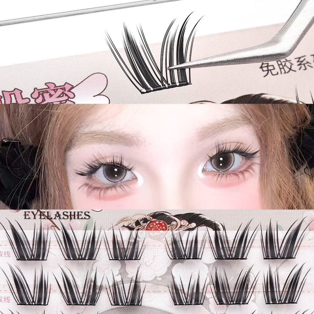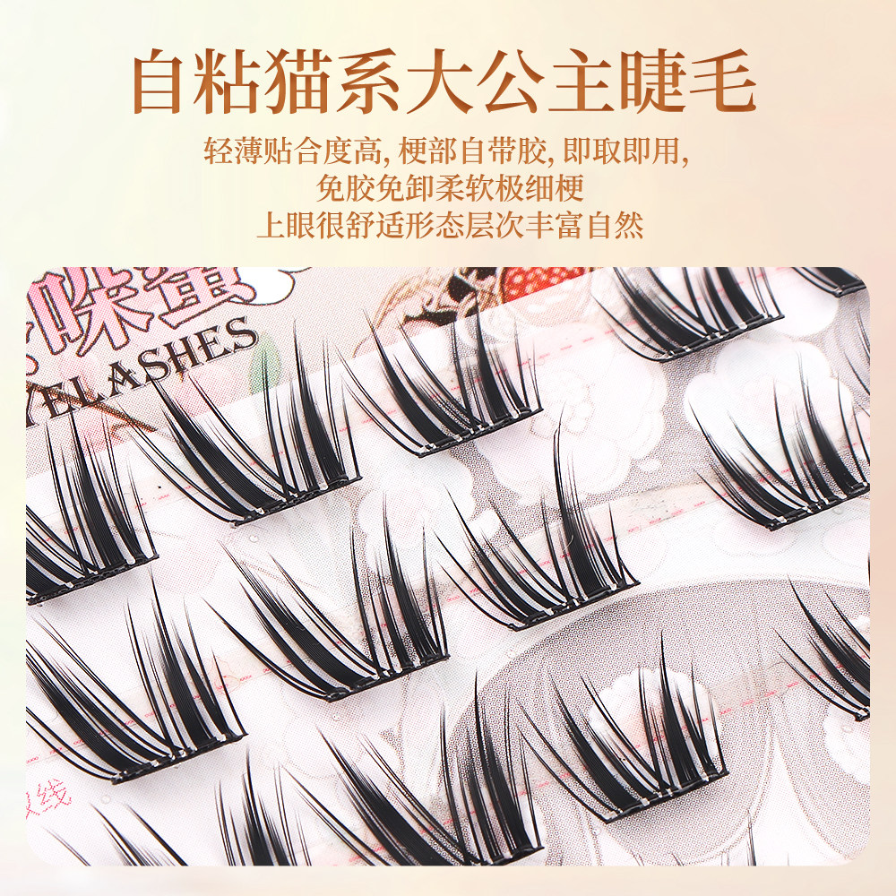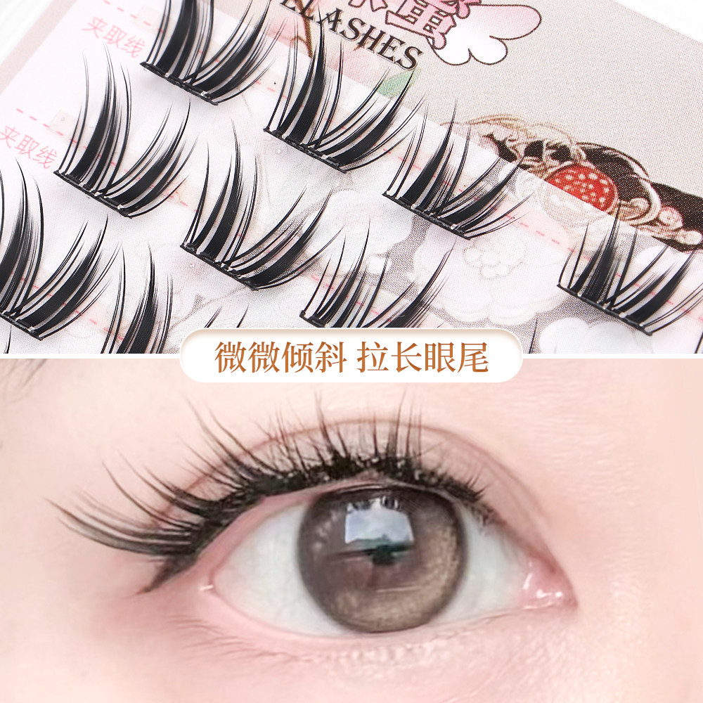 免胶大公主假睫毛猫系浓密款单簇斜飞漫画分段式单簇仿真大眼
