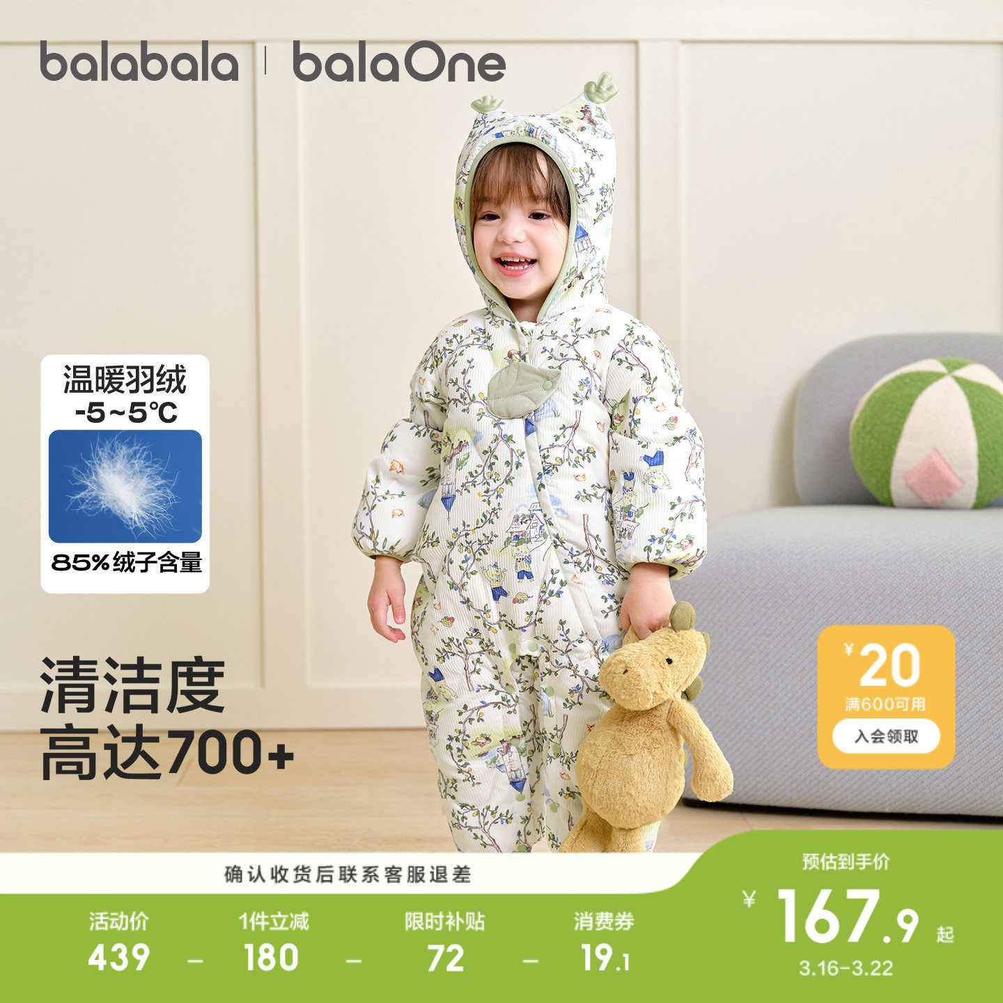 巴拉巴拉婴儿连体衣羽绒服宝宝衣服哈衣爬服2026新款儿童冬装保暖