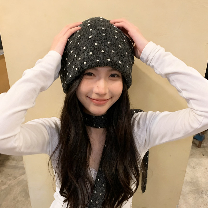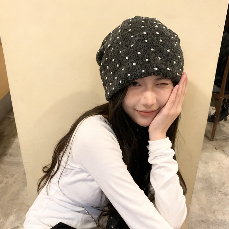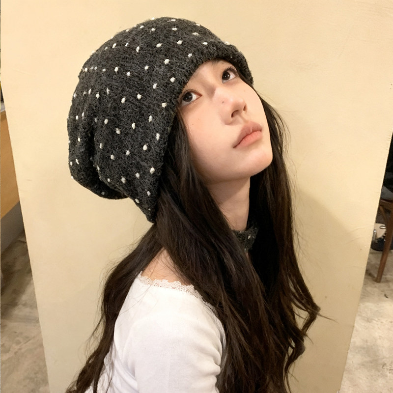 韩系博主慵懒风波点冷帽窄版围脖保暖显脸小针织帽毛线帽堆堆帽女