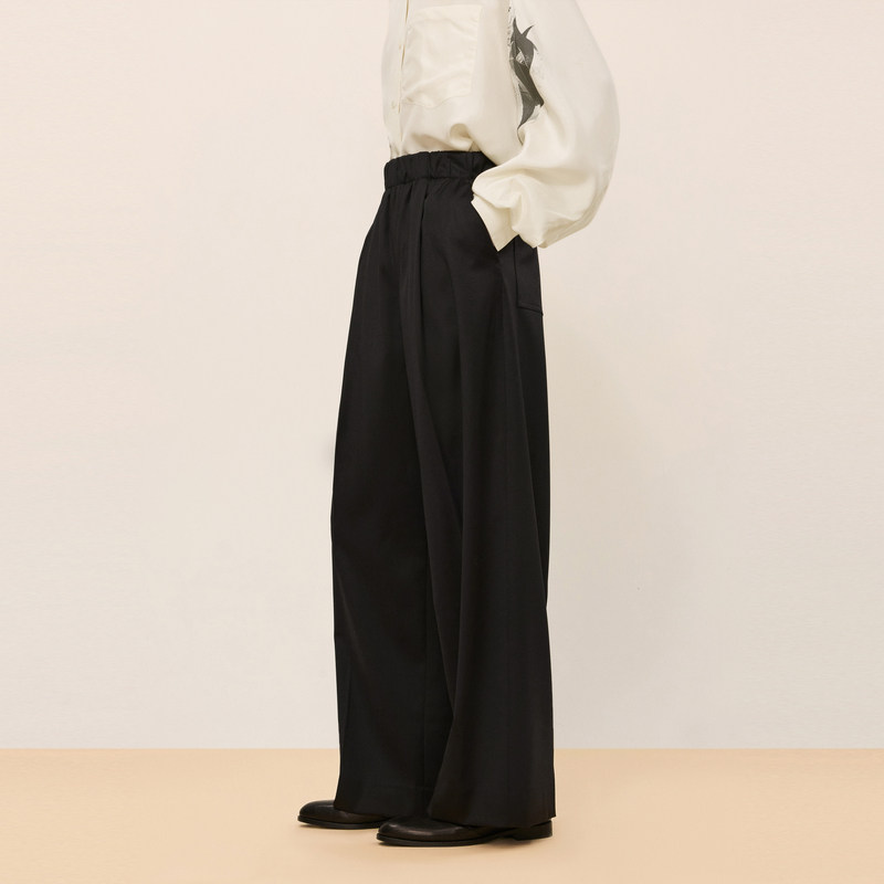 LESS春秋绵羊毛裤子女休闲简约宽松直筒西装长裤2N7E10910