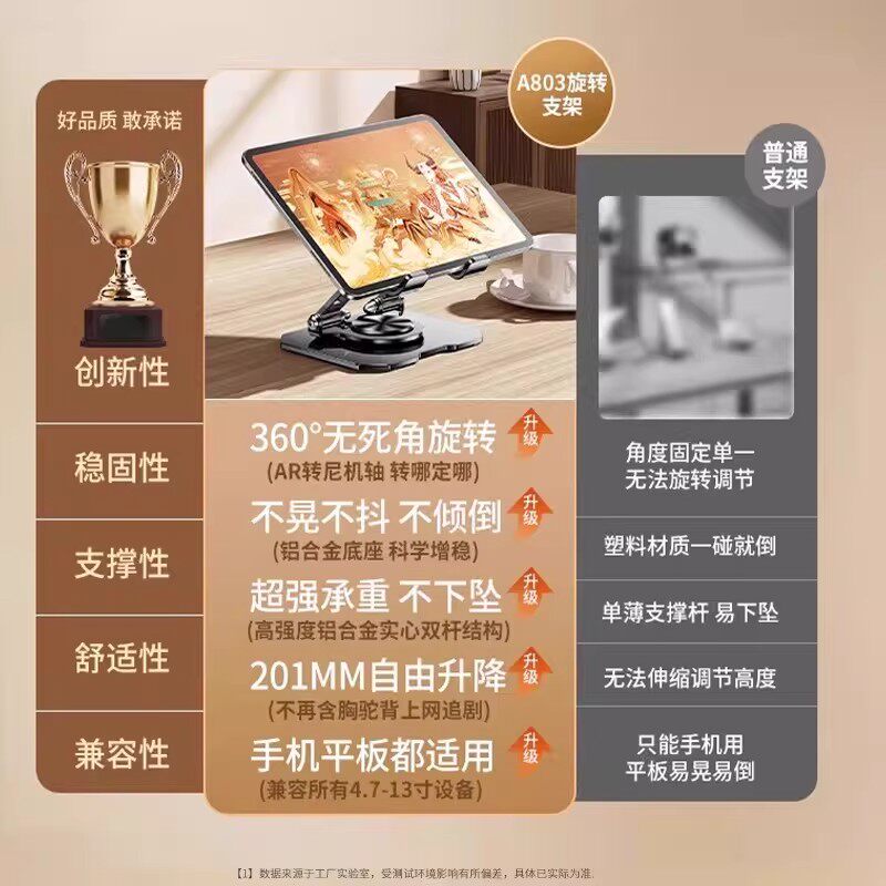 旋转平板支架桌面ipad支撑架吃鸡画画专用铝合金碳素钢懒人床头直播手机支架便携调节升降散热底座