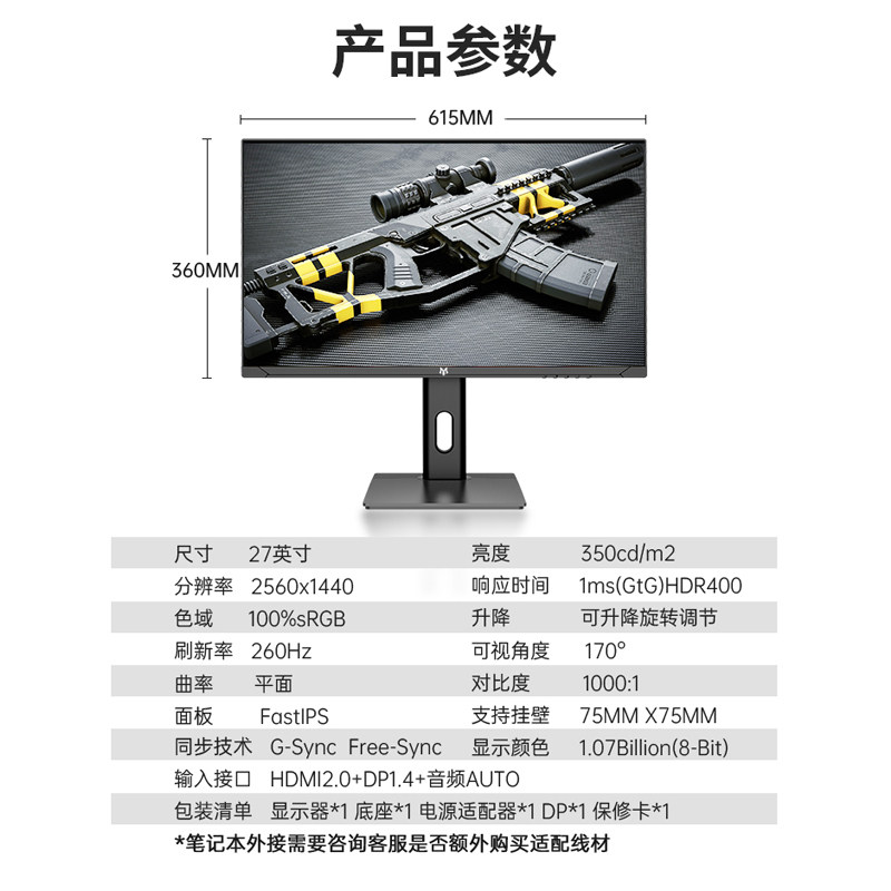 27英寸2K260Hz显示器硬件低蓝光电竞游戏电脑液晶台式外接显示屏