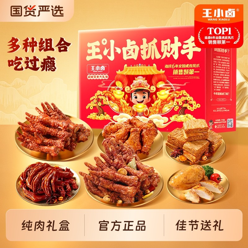 王小卤新年年货礼盒鸡爪卤味零食大礼包虎皮凤爪正品休闲鸭肉鸡翅