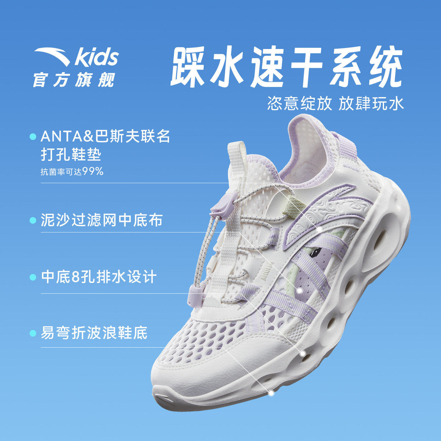 安踏儿童女童大童包头凉鞋溯溪鞋2026夏季新款女孩户外涉水沙滩鞋
