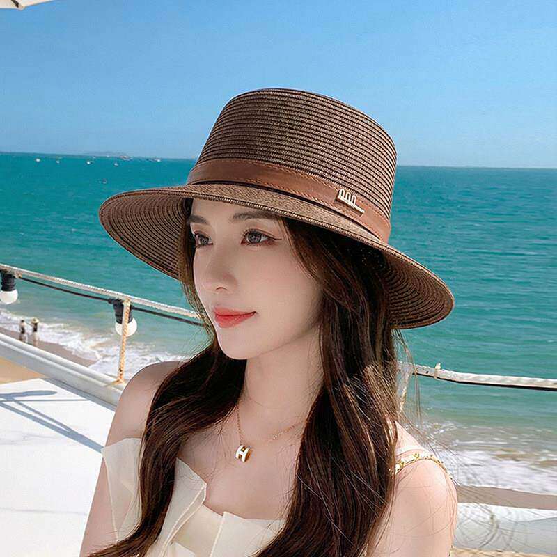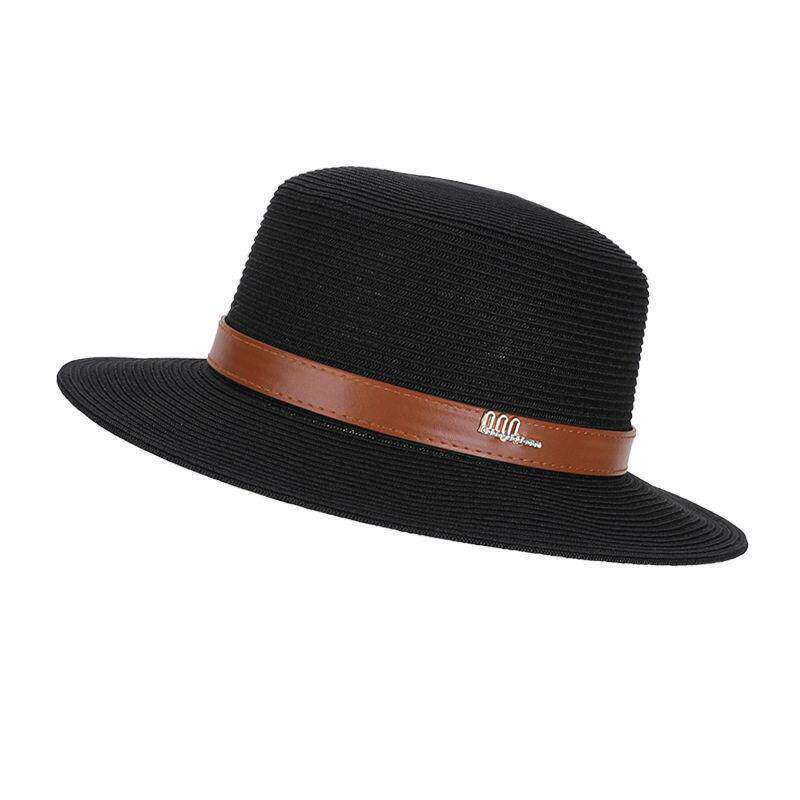 草帽女款夏季出游海边防晒太阳帽子时尚礼帽爵士帽可折叠黑色休闲