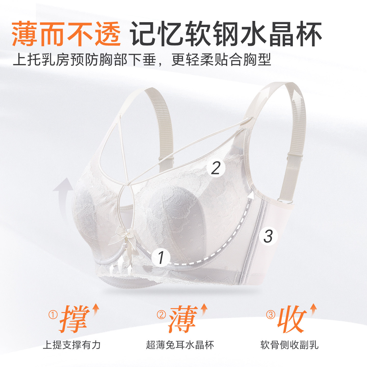 记忆钢圈舒适承托,超薄透气性感藏肉