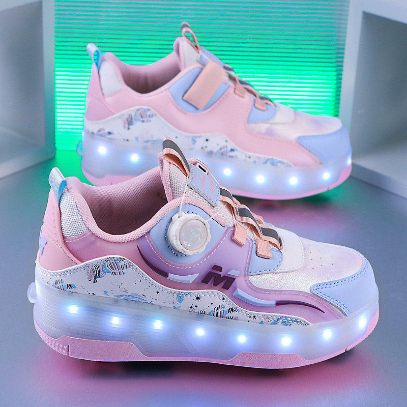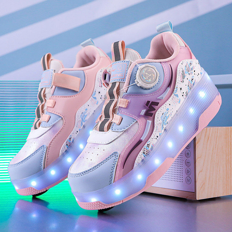 暴走鞋男女童夏季透气新款四轮轮滑鞋隐藏式可收缩带刹车轮滑鞋