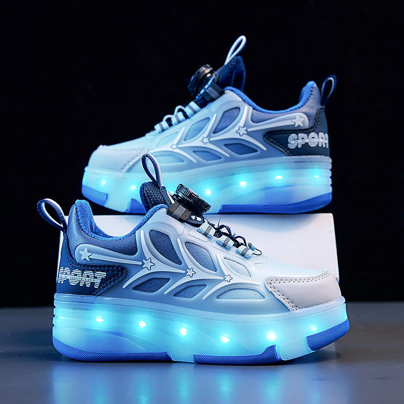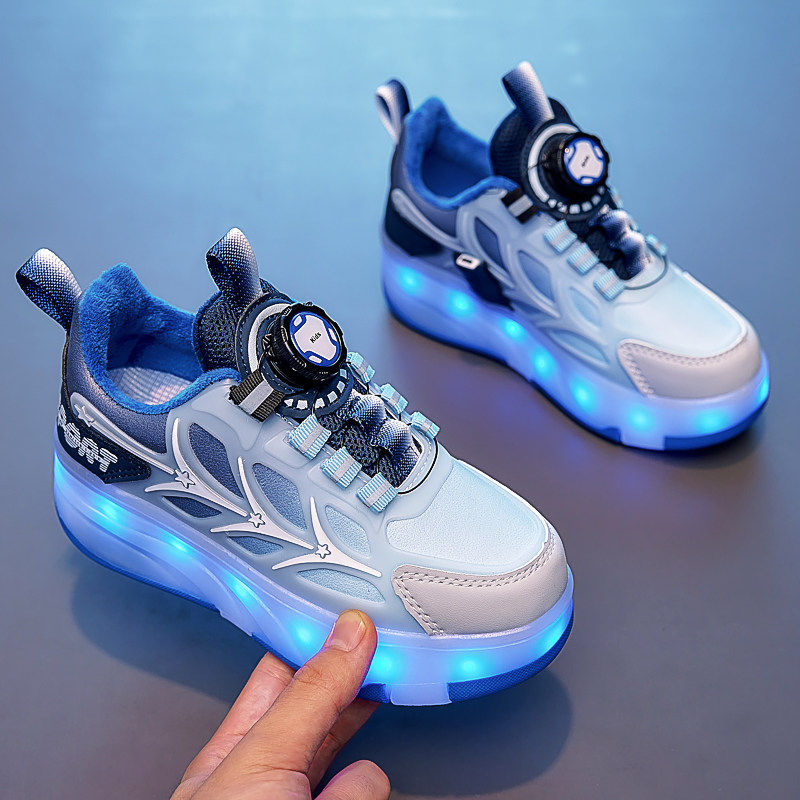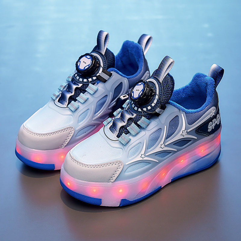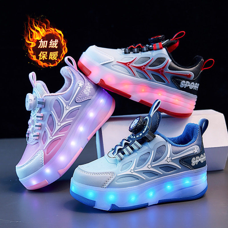 暴走鞋四轮冬季加绒带轮滑鞋子隐形男儿童女童运动滑板代步滑轮子