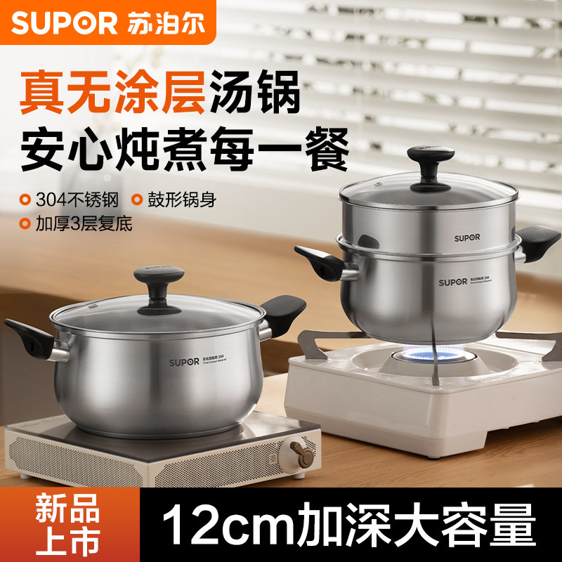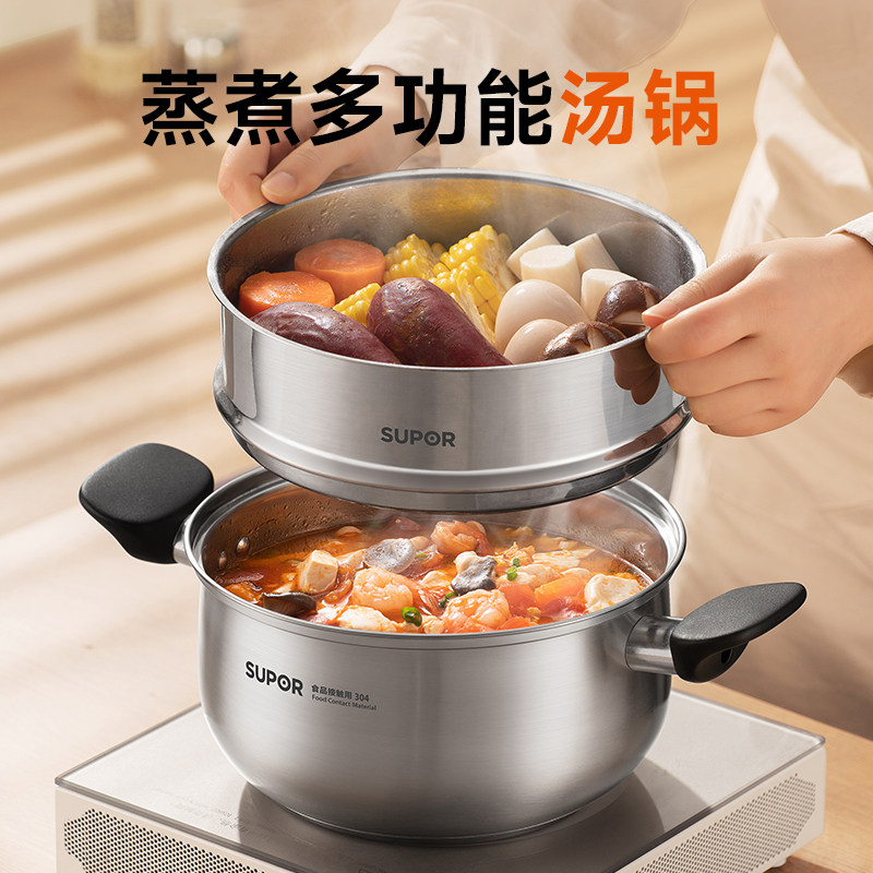 苏泊尔汤锅家用2025新款食品级不锈钢汤锅炖锅蒸锅官方旗舰店正品