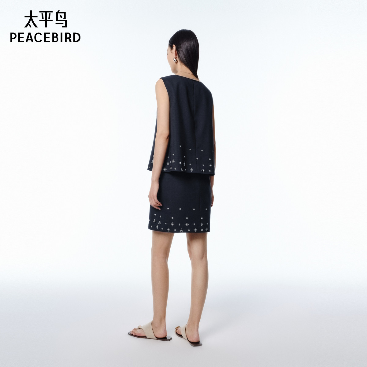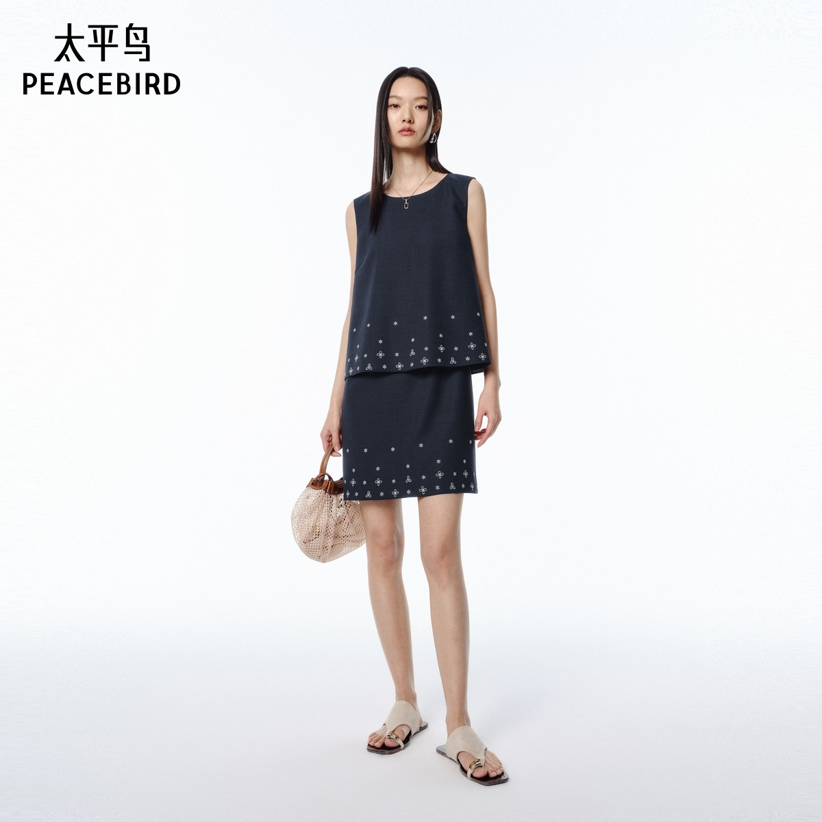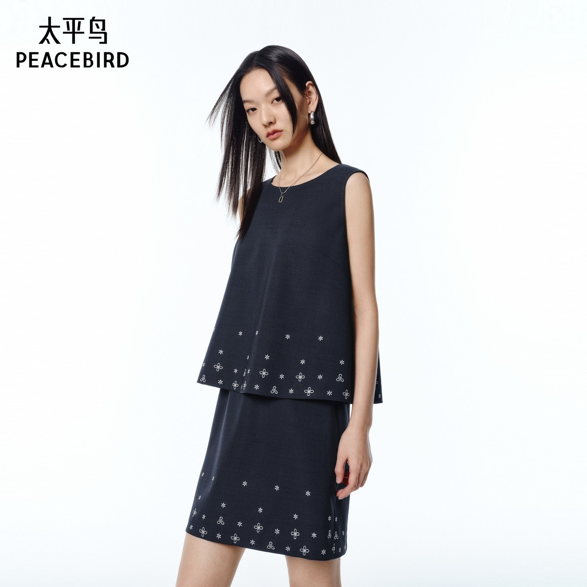 张风野联名 太平鸟刺绣假两件连衣裙2025夏新款无袖背心短裙套装