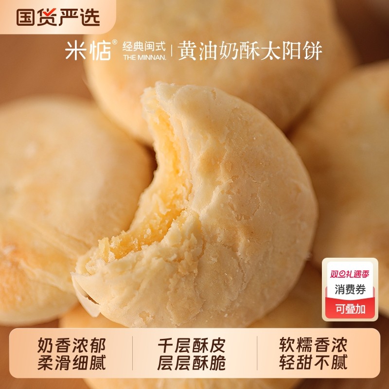 米惦黄油奶酥太阳饼闽南台湾奶香黄油酥饼中式点心香软醇厚香甜