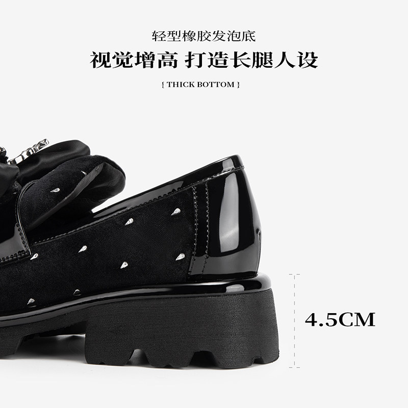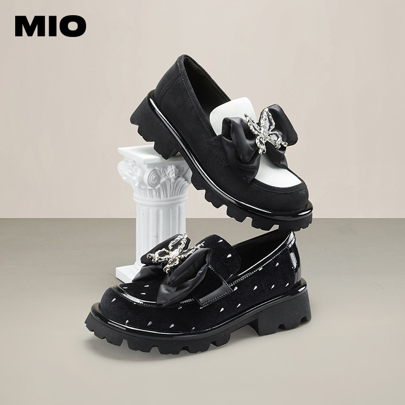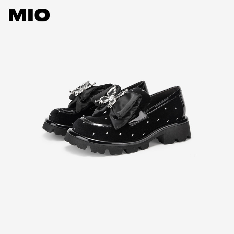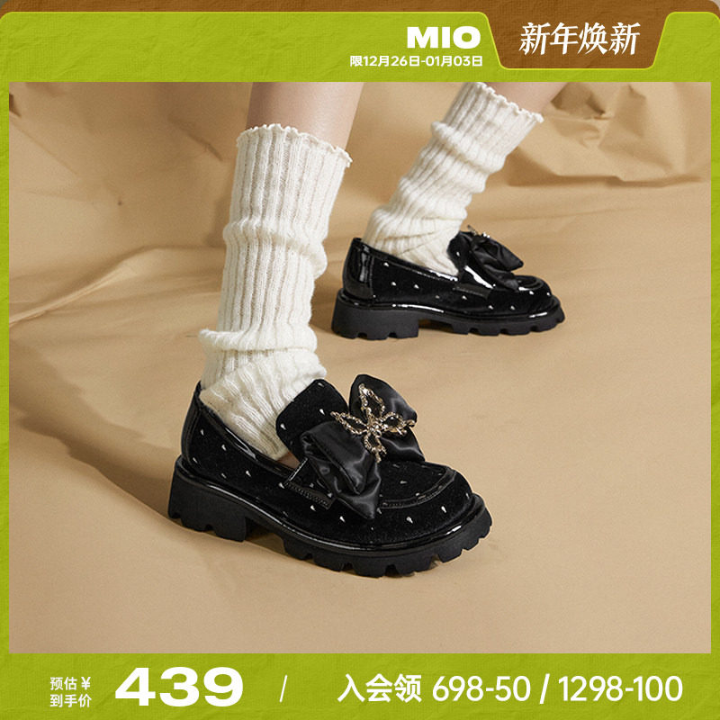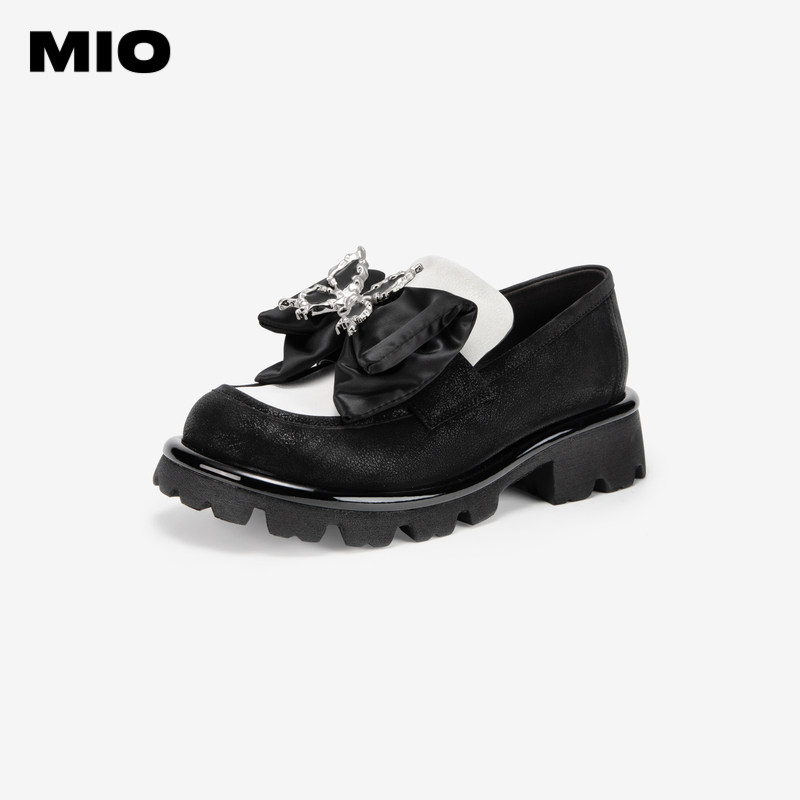 MIO米奥秋季中跟乐福鞋复古蝴蝶结小皮鞋厚底深口单鞋女