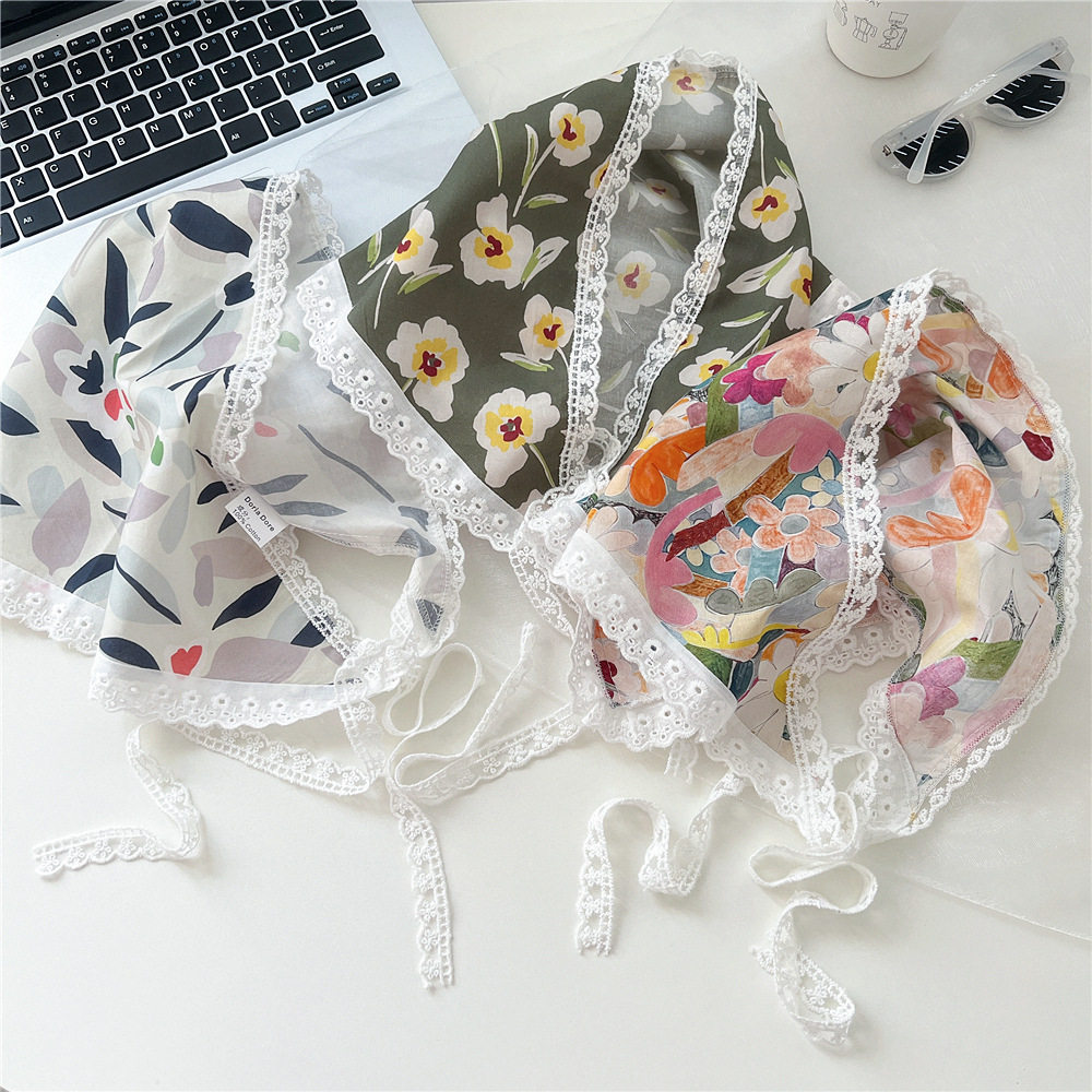 森系蕾丝花边三角巾女春秋小碎花棉麻小领巾发带装饰薄款包头丝巾