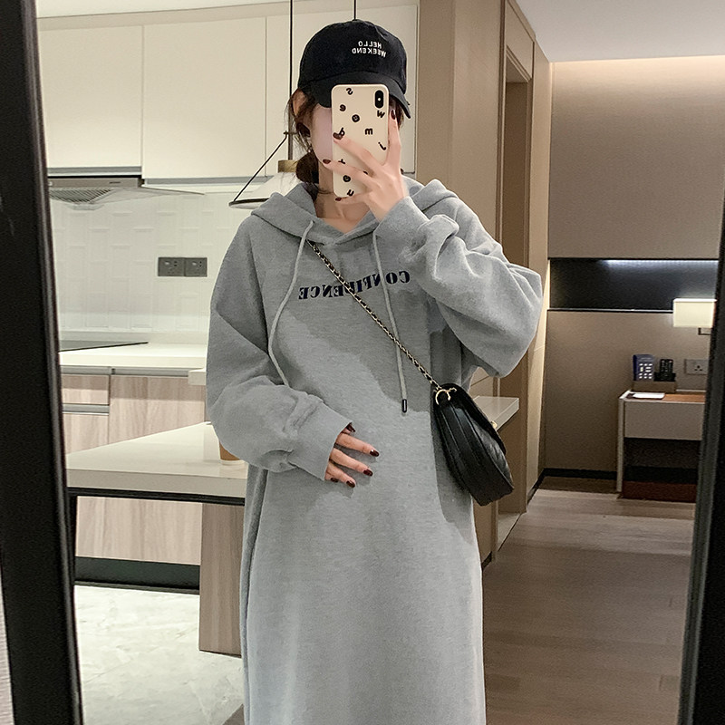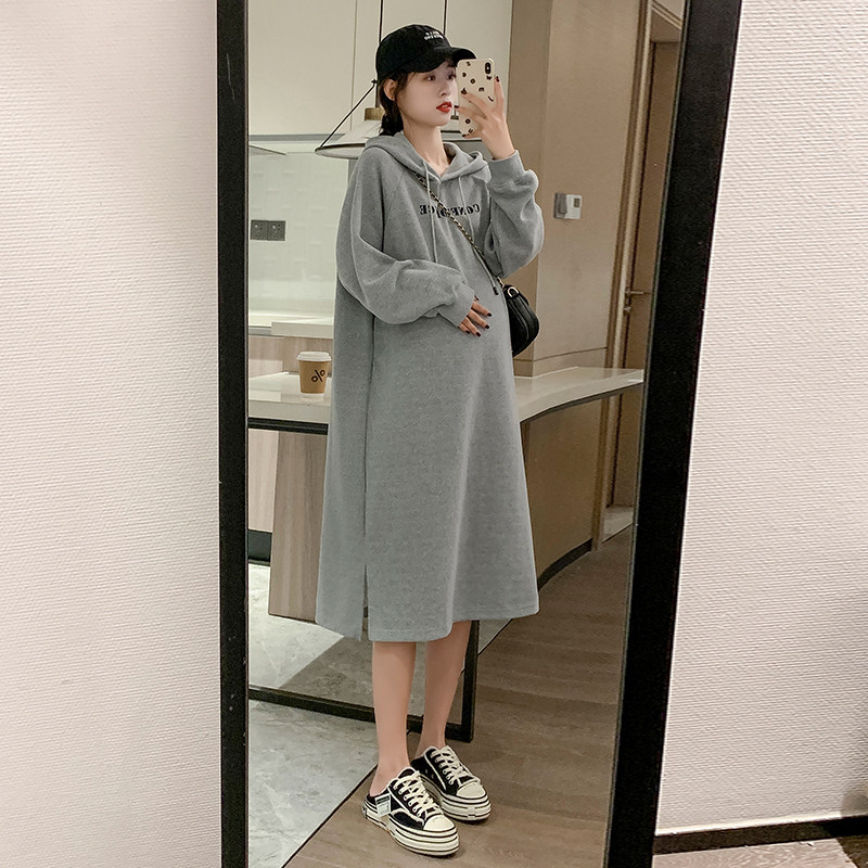 孕妇春秋装卫衣中长款连衣裙2025新款时尚洋气加绒秋季时髦上衣女
