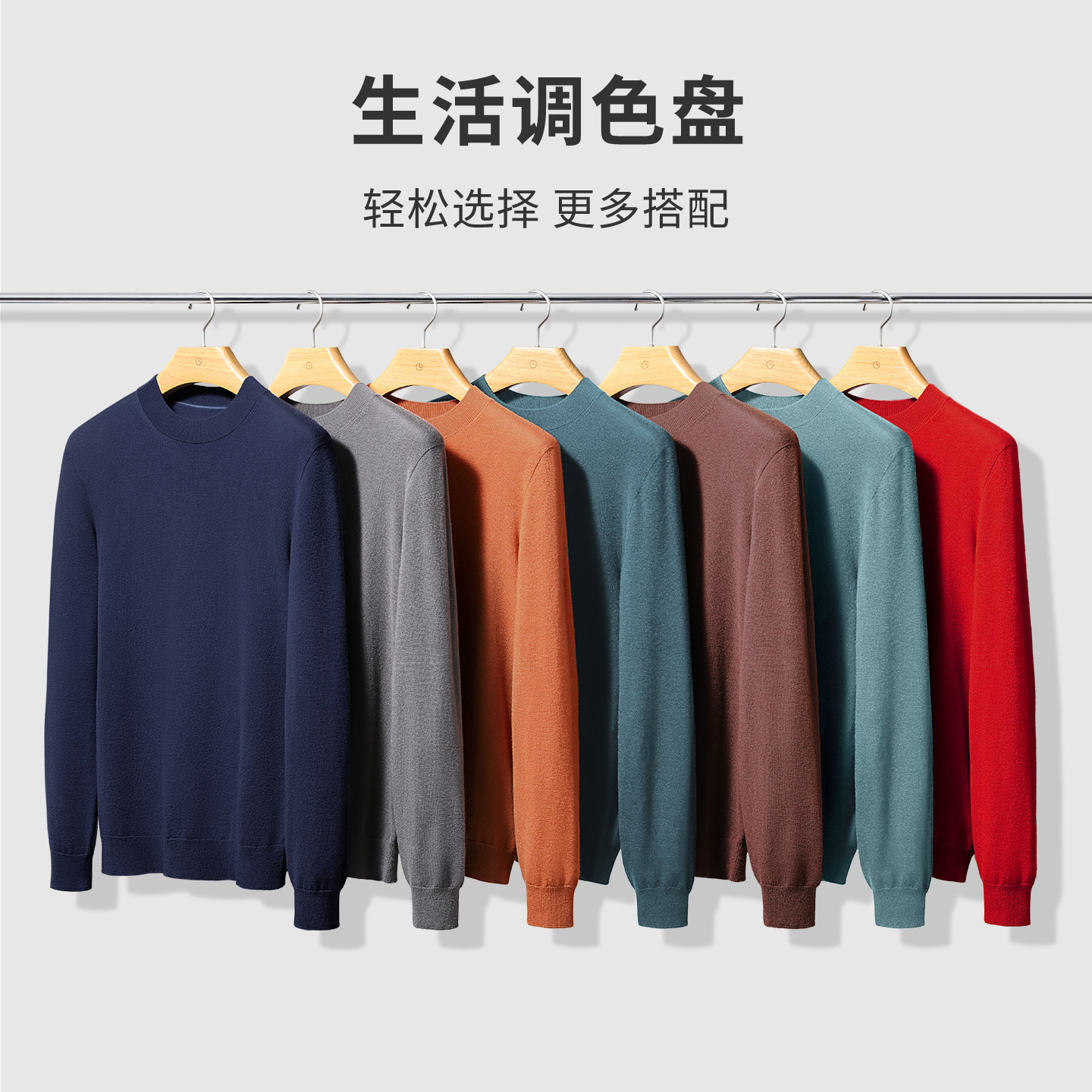 鄂尔多斯市半高领100%纯羊毛衫男休闲中厚保暖毛衣针织打底羊绒衫
