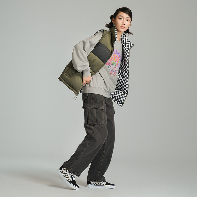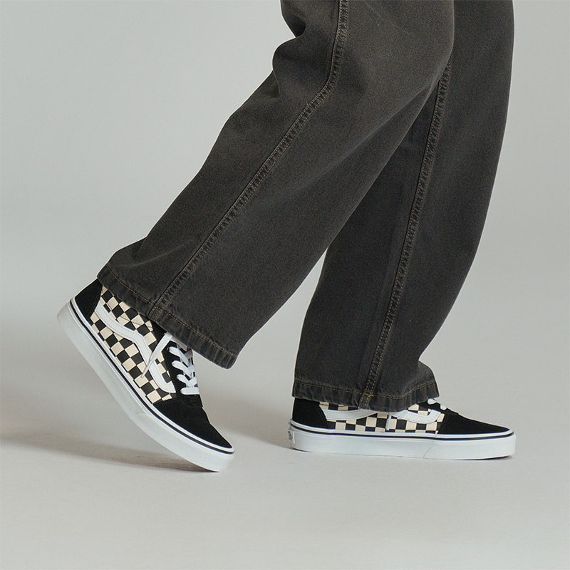 Vans范斯官方 Ward黑白棋盘格街头风拼接女鞋板鞋