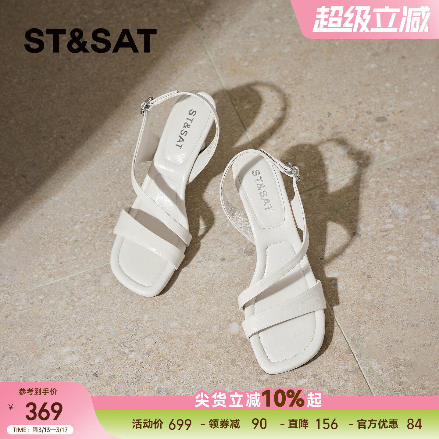 星期六法式凉鞋女2026年夏季新款时尚米白色高跟百搭露趾时装凉鞋