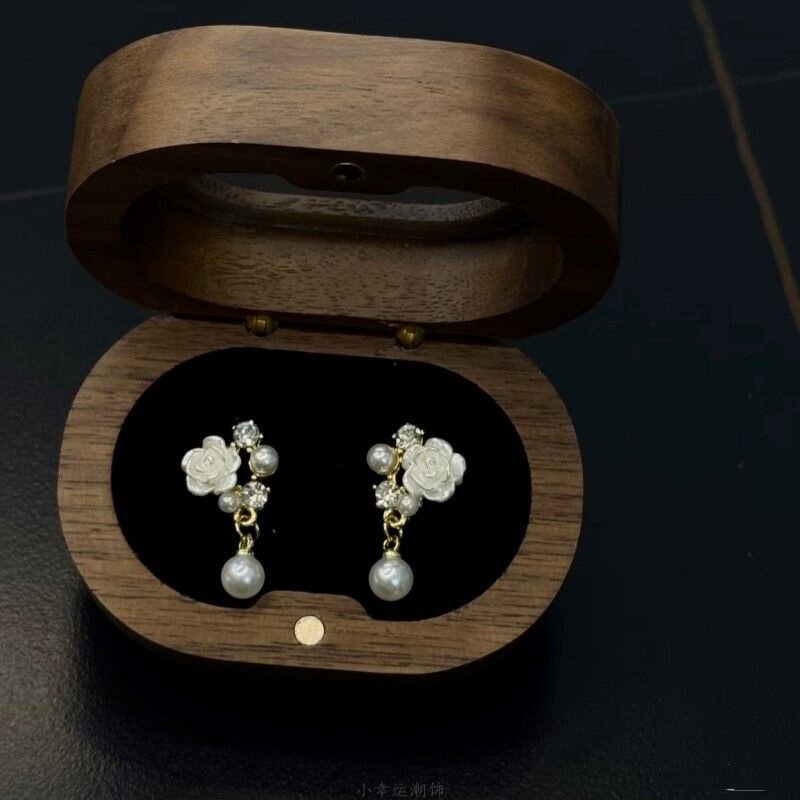 Vintage古着巴黎的白玫瑰百搭高级气质爆款耳钉耳夹花朵蝴蝶流苏