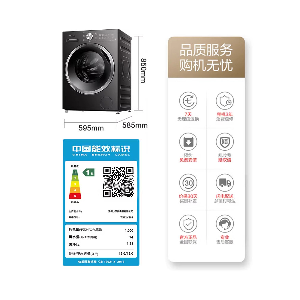 【纯平自由嵌】小天鹅12KG家用超薄全自动滚筒洗脱一体洗衣机 28T