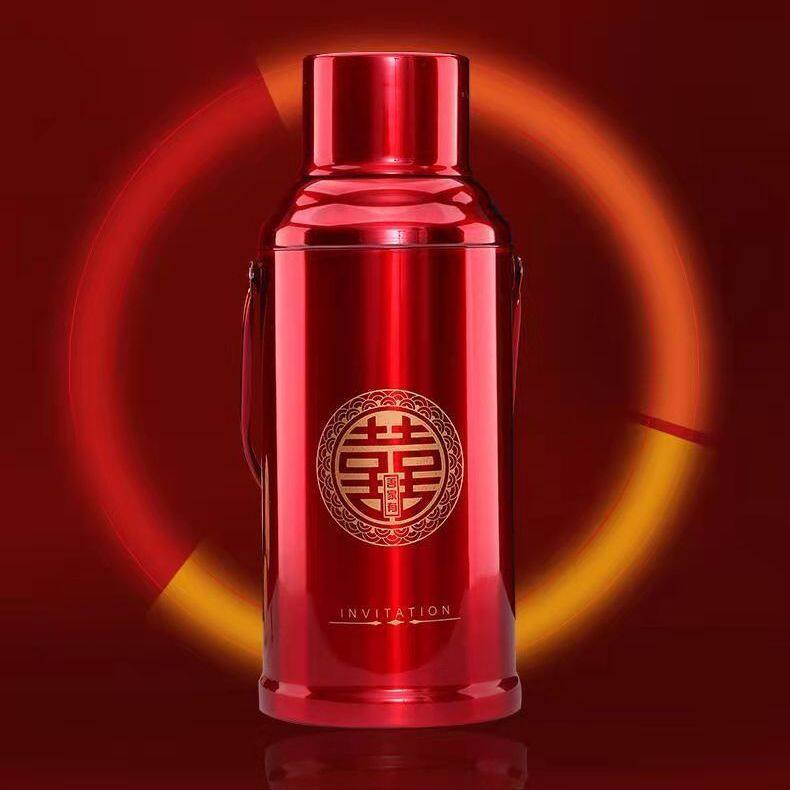 结婚用品婚庆陪嫁红色暖水壶热水瓶保温壶结婚一对保温瓶暖壶家用