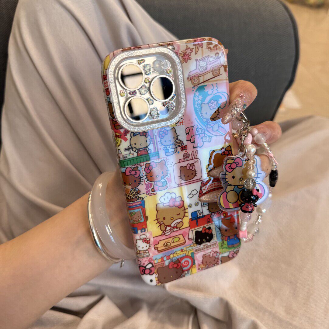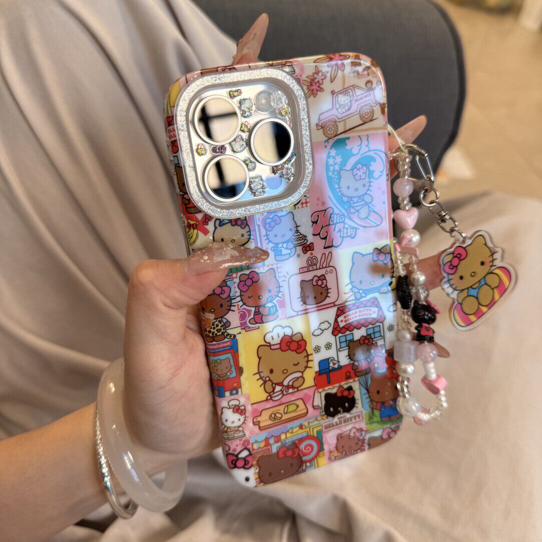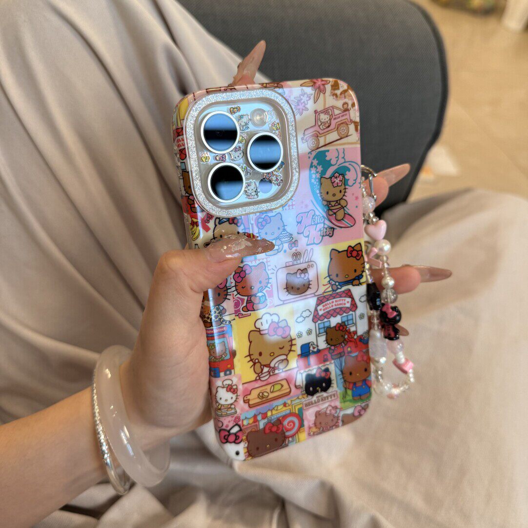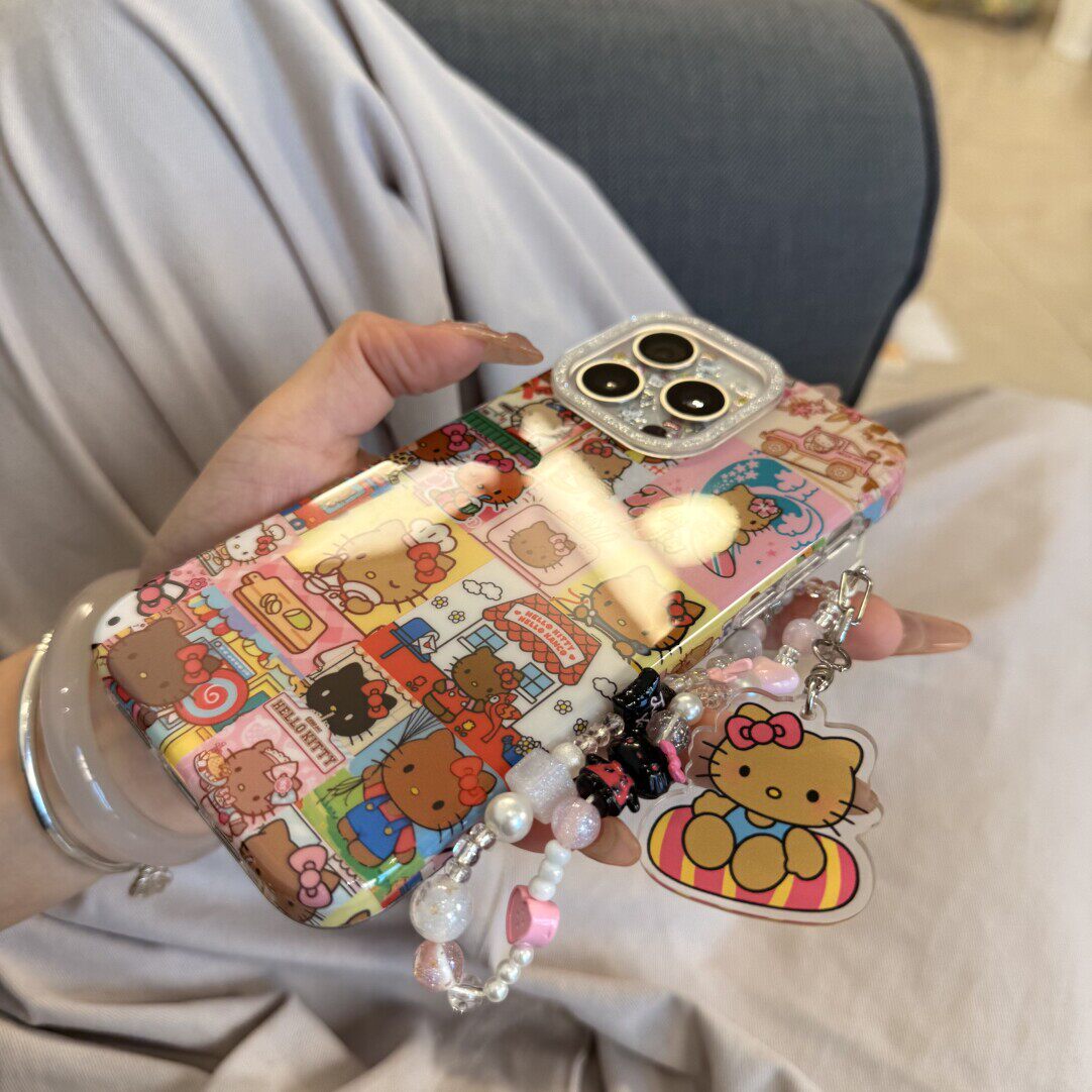 夏日度假风黑皮小猫挂件链条适用苹果17promax女新款iPhone16promax手机壳14卡通可爱13个性趣味15全包防摔套