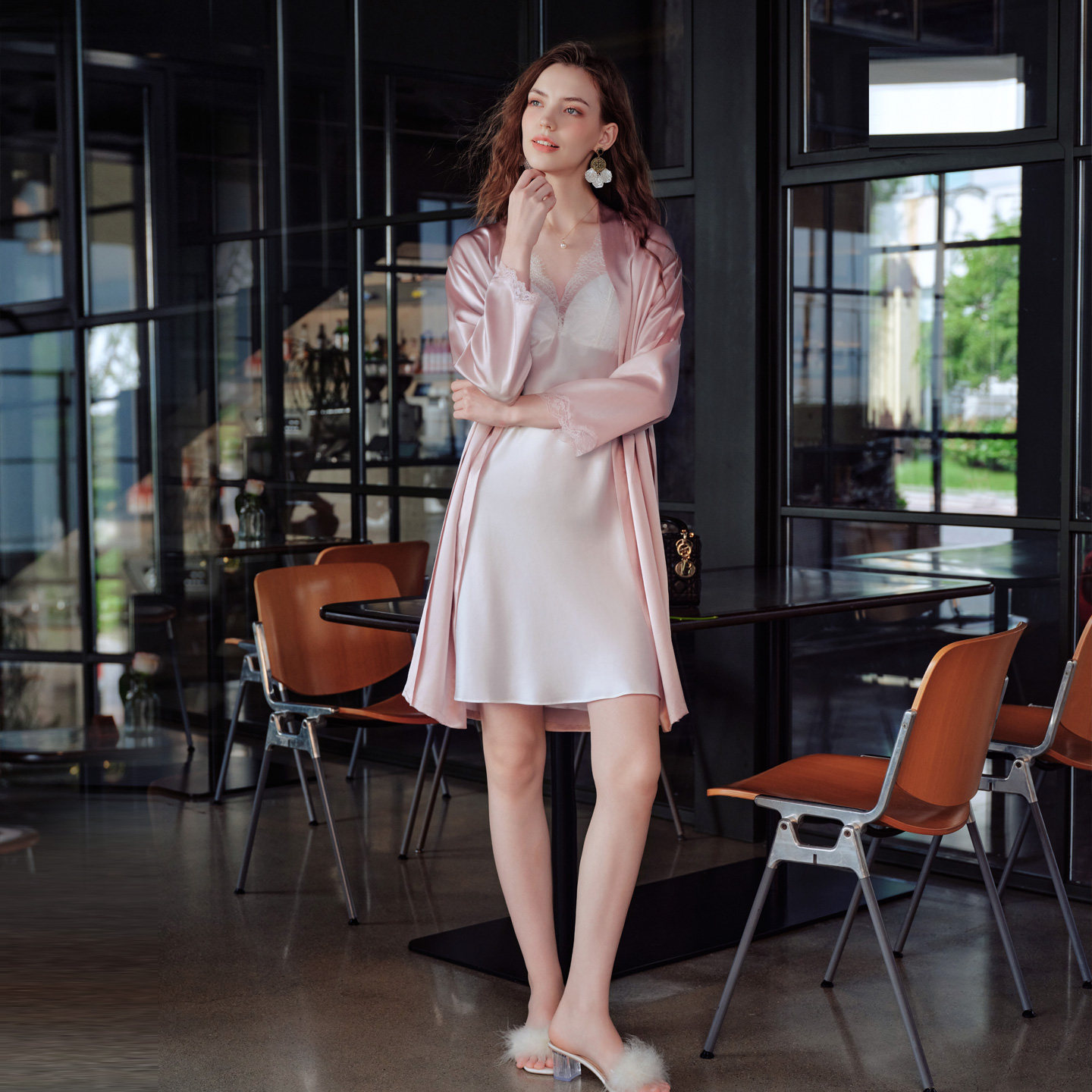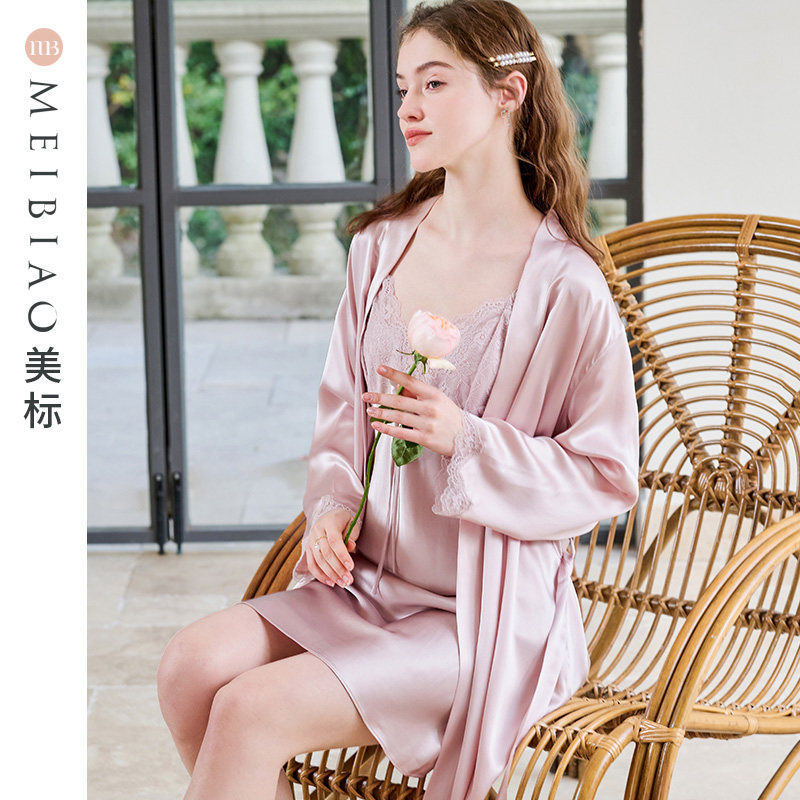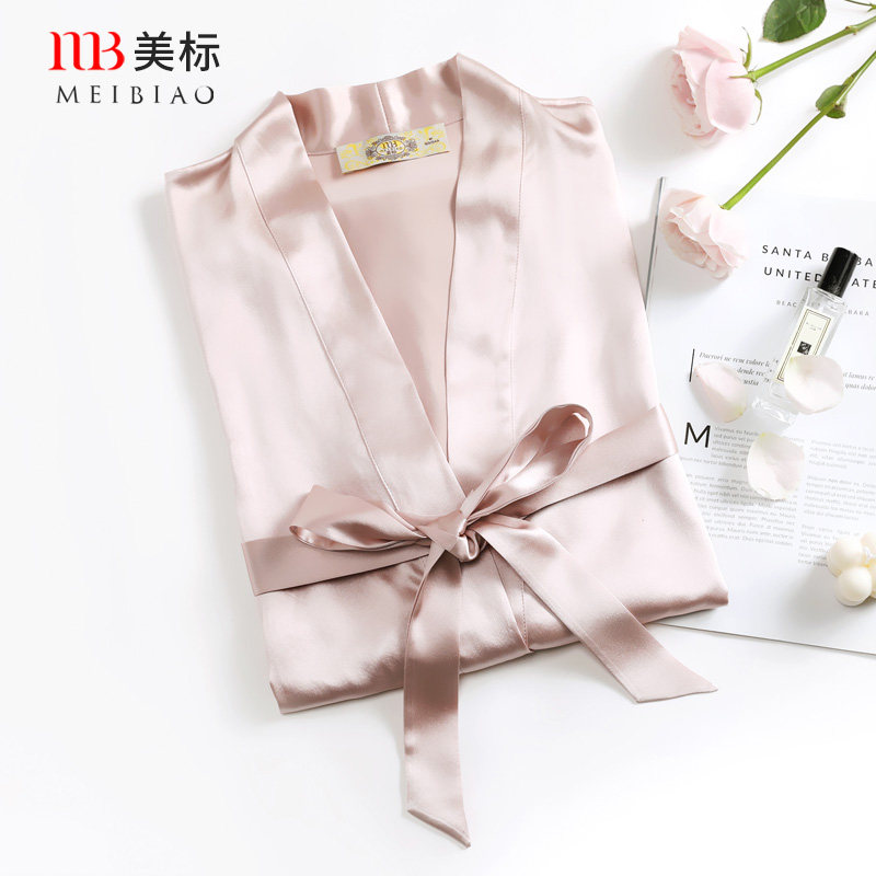 美标真丝长袖单睡袍女春夏丝绸睡衣晨袍浴袍桑蚕丝家居服