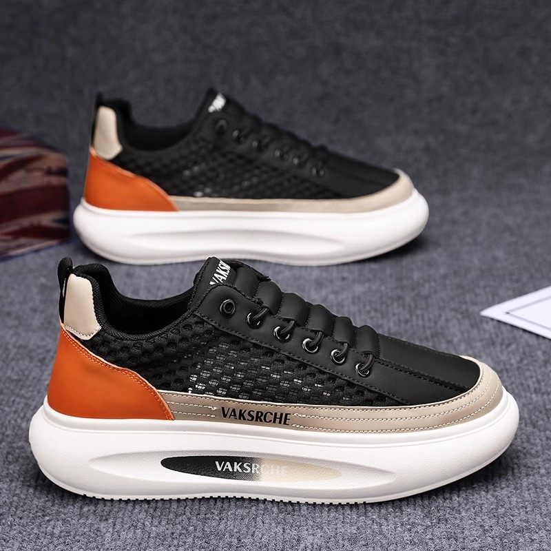 红蜻蜓男鞋秋冬2025新款男士运动休闲鞋网面透气防臭黑色增高鞋子