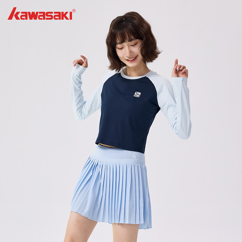 kawaskai川崎秋冬新款圆领长袖T恤衫男女款运动羽毛球训练服卫衣