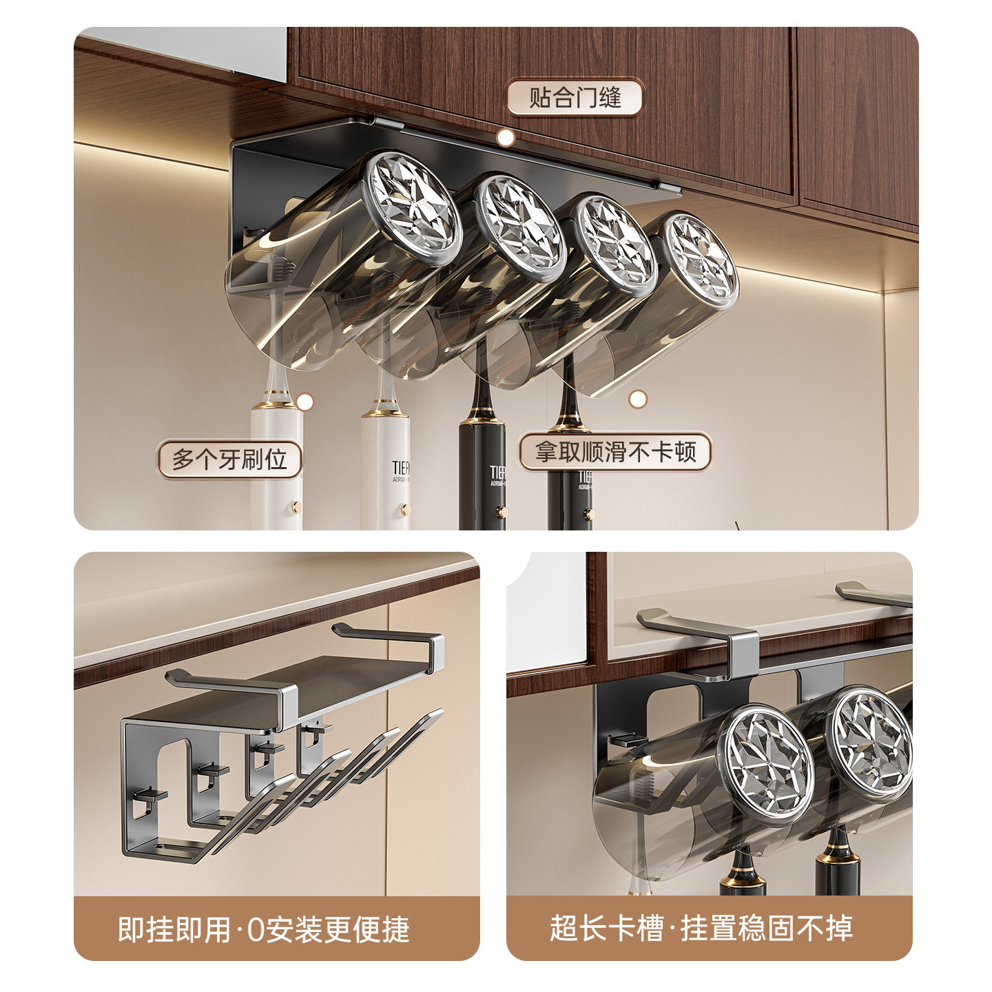 牙刷漱口杯置物架免打孔卫生间镜柜下柜挂漱口杯牙刷架吹风机架