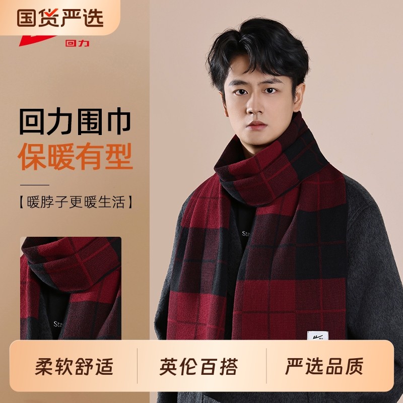 回力围巾男冬季高级感百搭加厚保暖围脖防风女生日礼物送男生实用