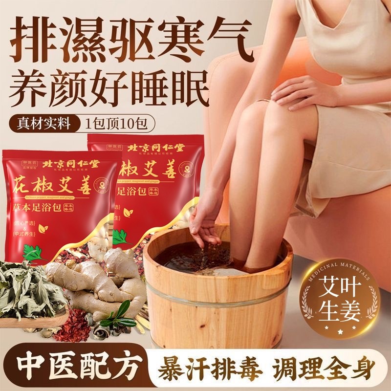 TRT/同仁堂养生足浴包艾草花椒去湿气助睡眠祛痘中药泡脚小腿中医