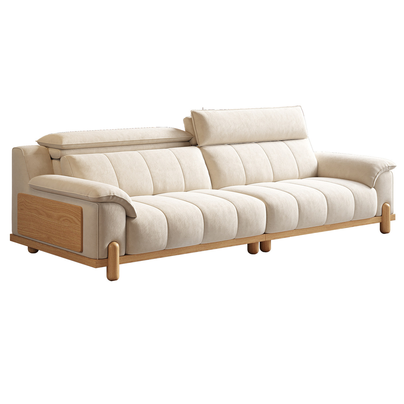 司朴原木奶油风实木布艺沙发小户型客厅日式直排三人位棉麻布沙发