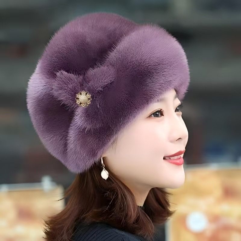 毛皮草帽子女冬保暖包头帽中老年妈妈帽女士保暖帽红色黑色紫色