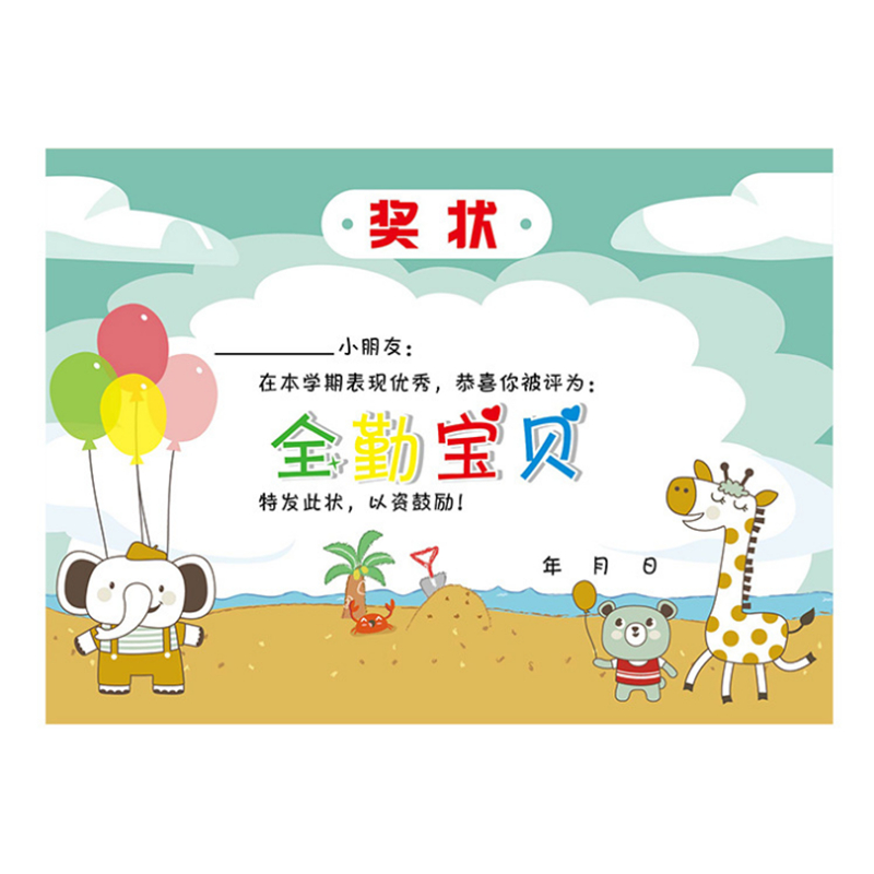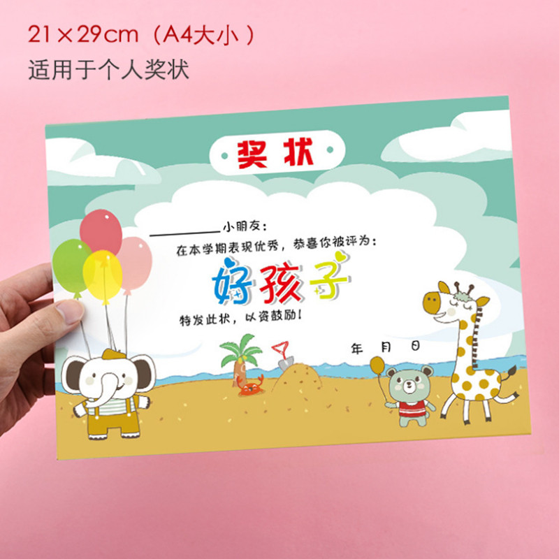 幼儿园表扬信a4小奖状进步小明星多款卡通可爱创意奖励卡小学生儿童奖状纸全勤宝宝优秀好孩子班主任教师专用