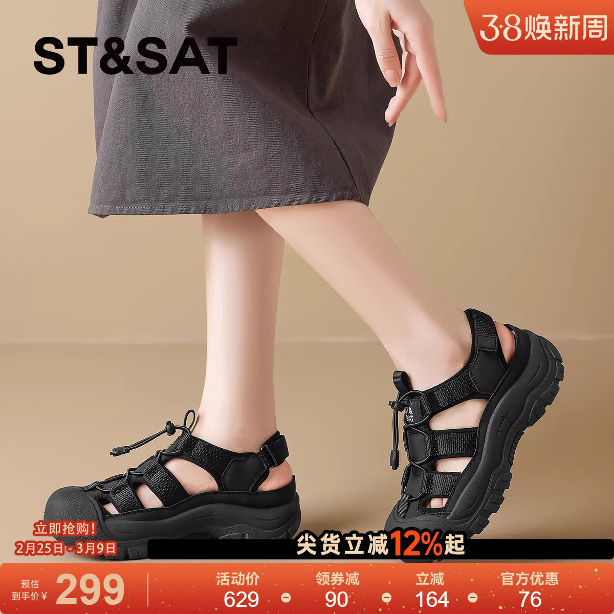 星期六厚底罗马包头凉鞋女款2025夏新款透气洞洞鞋户外涉水溯溪鞋