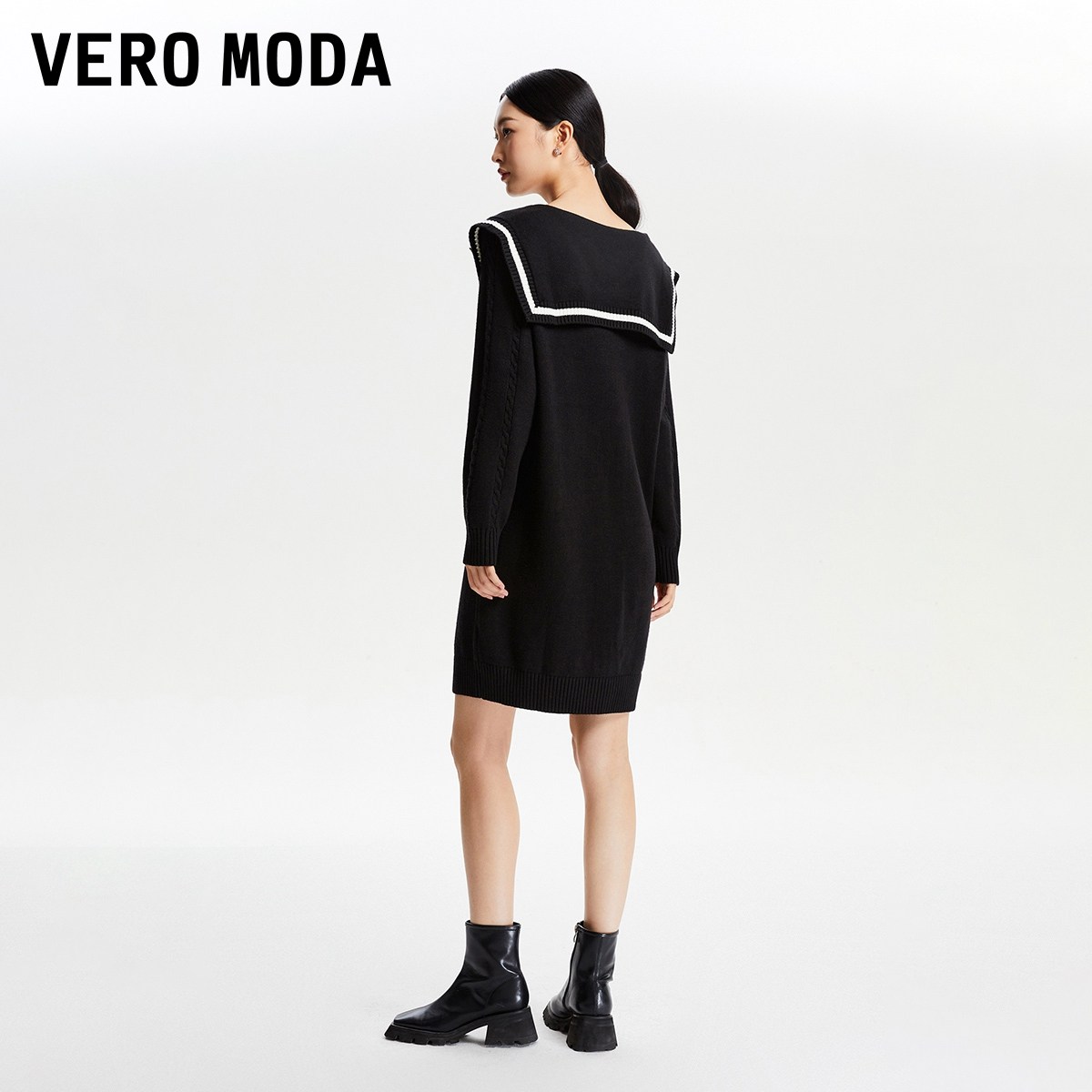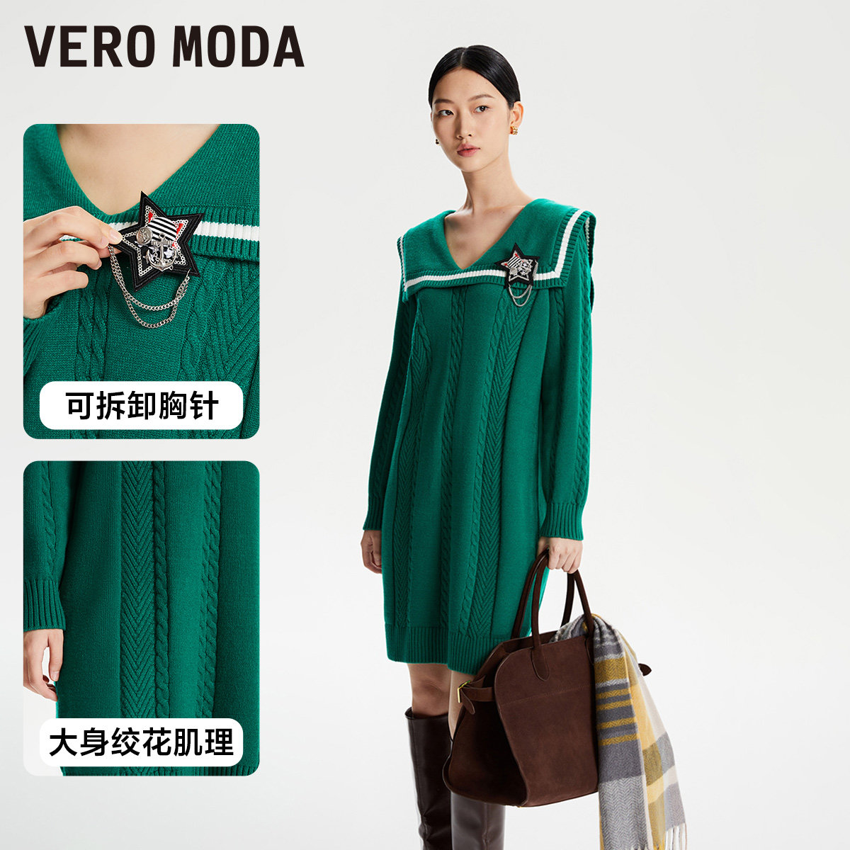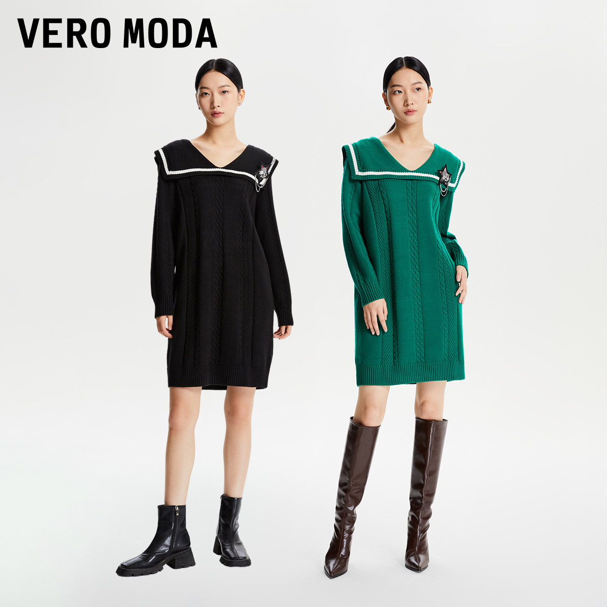 Vero Moda奥莱针织连衣裙子秋冬清仓宽松撞色v形海军领休闲女流行