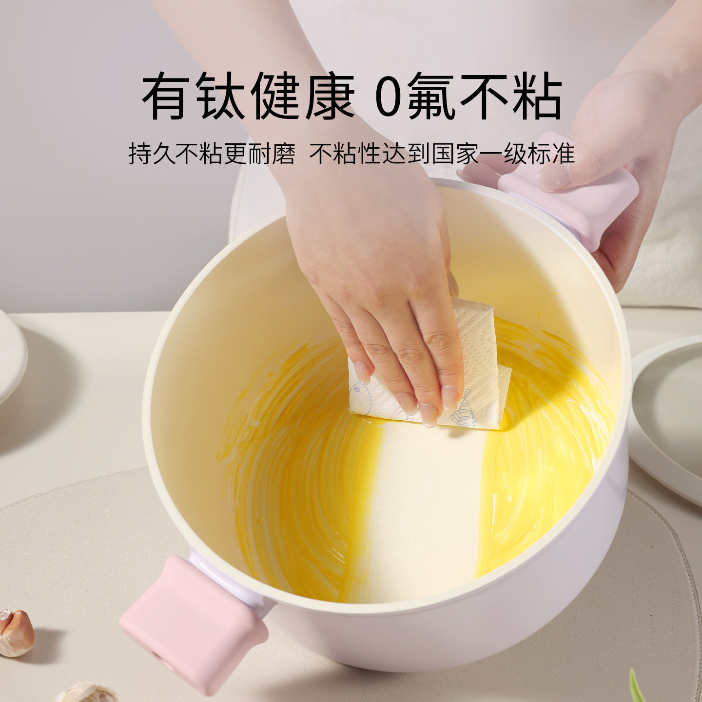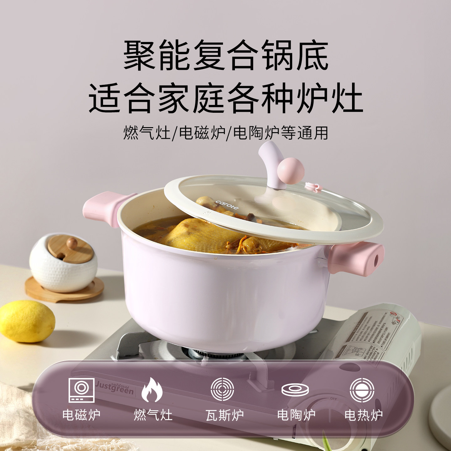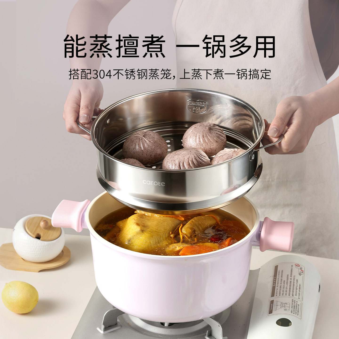 卡罗特汤锅钛陶瓷不粘锅煮锅炖锅蒸锅家用双耳煲汤锅电磁炉燃气灶