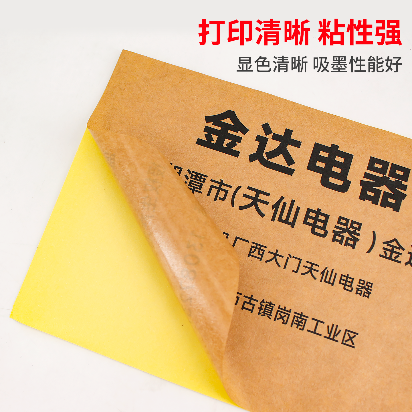 内切割A4牛皮纸不干胶打印纸直角圆角背胶贴纸模切激光喷墨a4打印标签贴纸深色纸箱色商标贴自粘可粘可定制