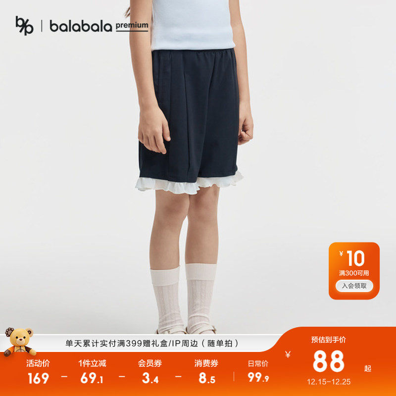 【premium】巴拉巴拉高端线夏装撞色雪纺拼接假两件裙裤短裤女童