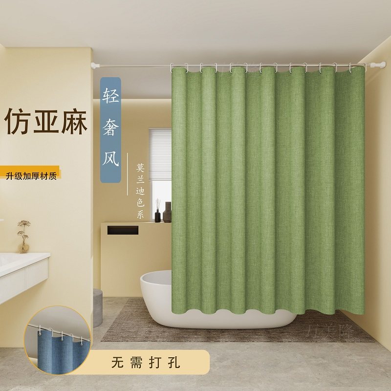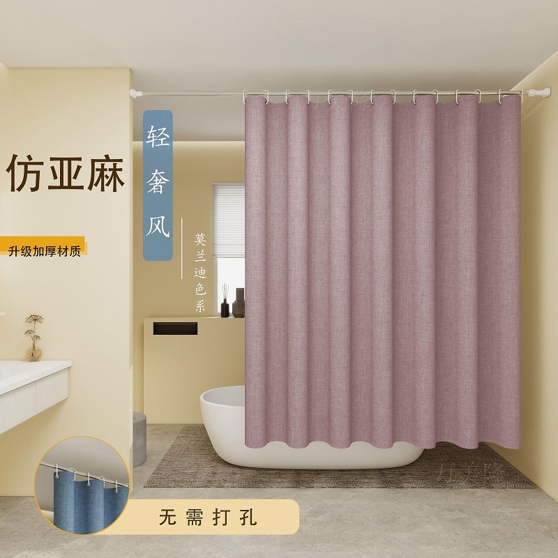 高档加厚浴室防水浴帘布卫生间浴帘套装免打孔厕所隔断帘门帘窗帘